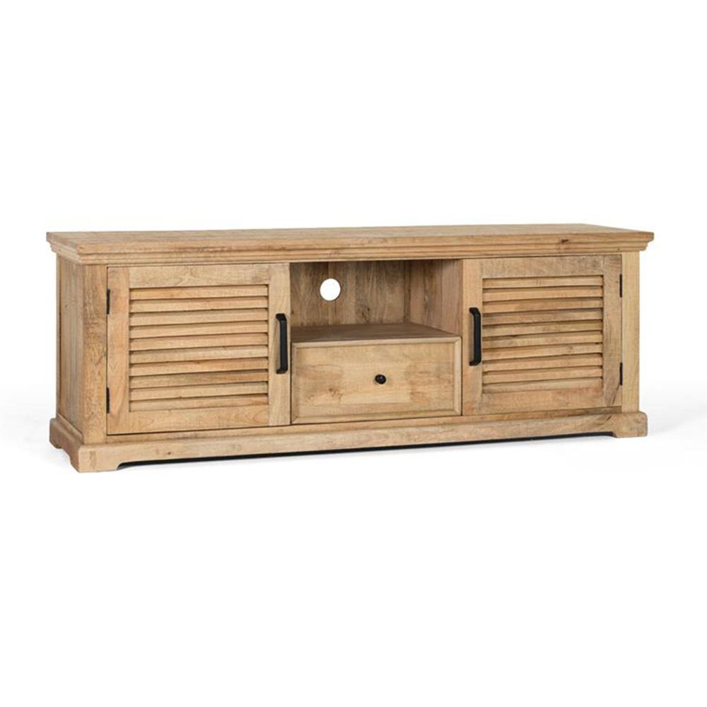 Item Code: 1731 Television cabinet with 2 doors and 1 drawer made of solid mango wood in natural color. As it is natural wood, it can come with its original knots and grains.