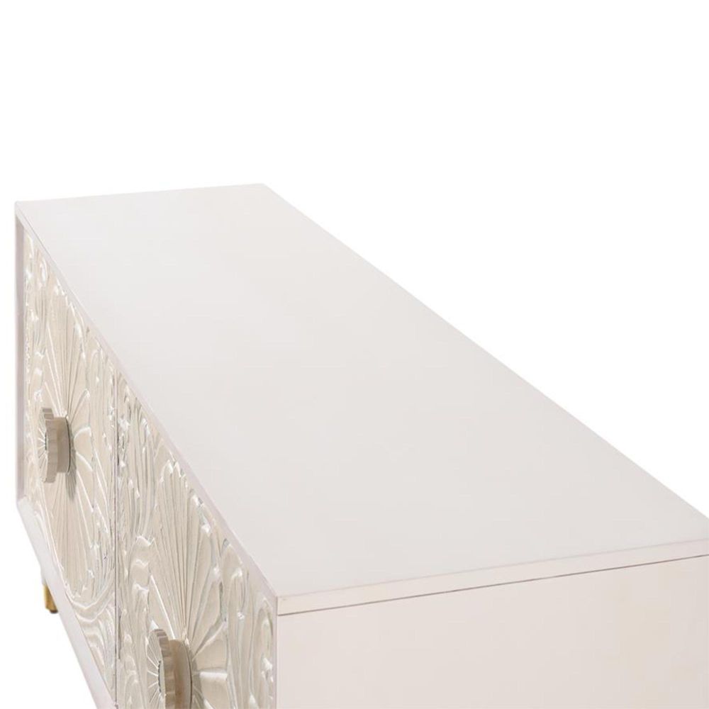 Dover TV Unit - White Carved Mango Wood - 4 Door - Large