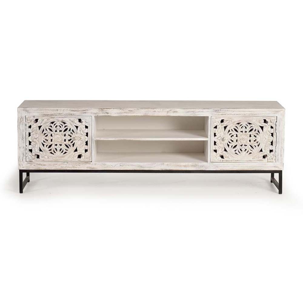 Quintana TV Unit - Washed Carved - Mango Wood - 2 Door - Large