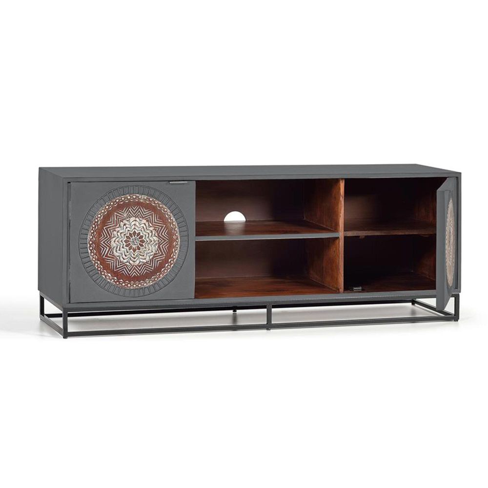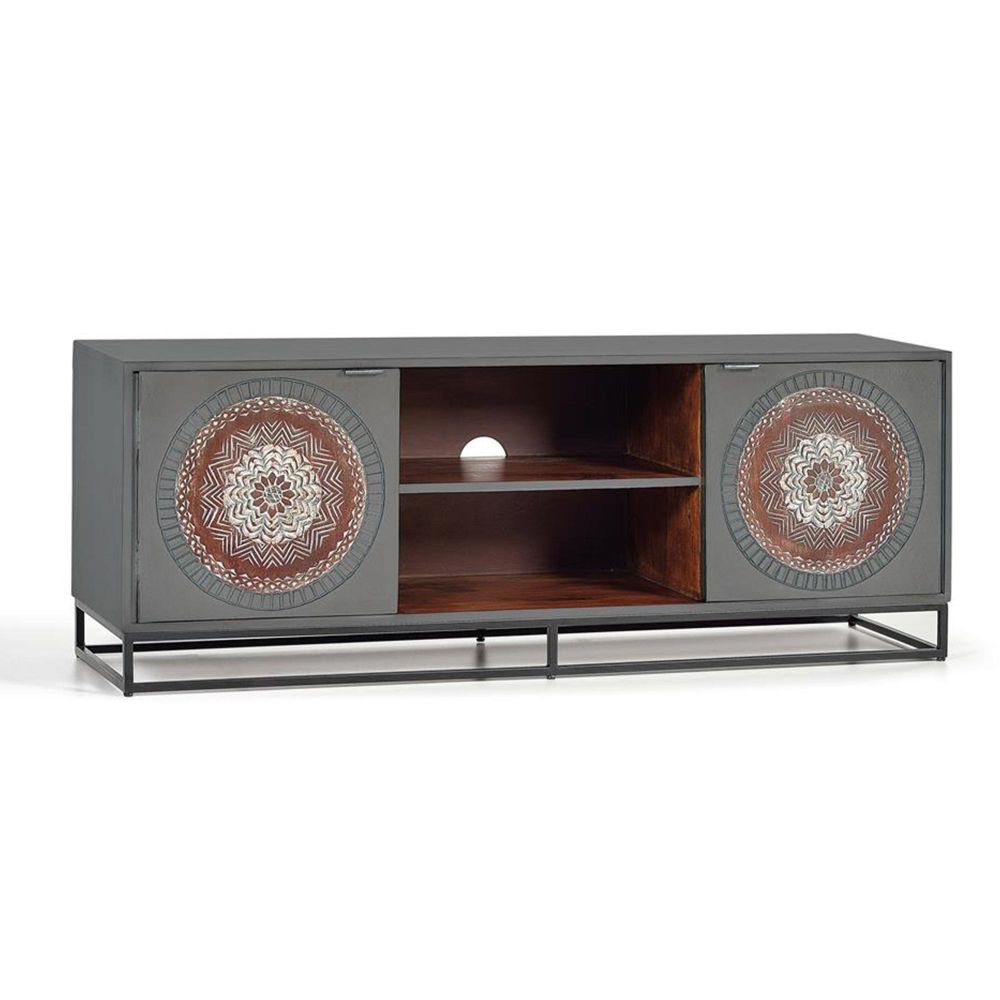 Lytton TV Unit - Grey Carved Mango Wood - 2 Door