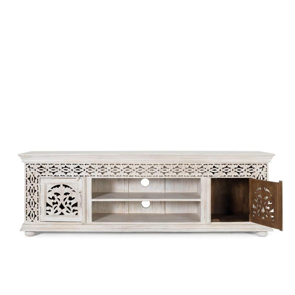 Ferrara Storage Large TV Unit - 2 Door - Carved Washed Mango Wood