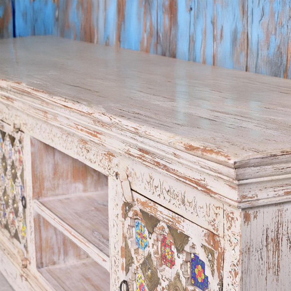 Item Code: 6571 Mango Wood Tv Stand With Maiolica And Bronce Details