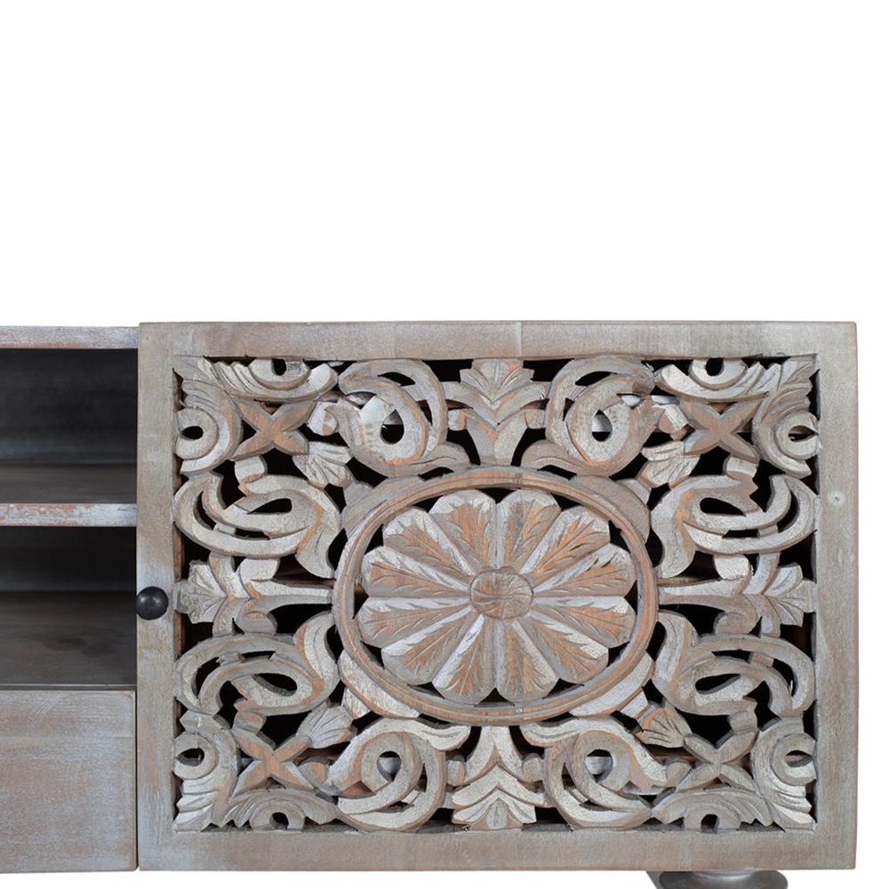 Edith Storage TV Unit - Grey Carved Mango Wood