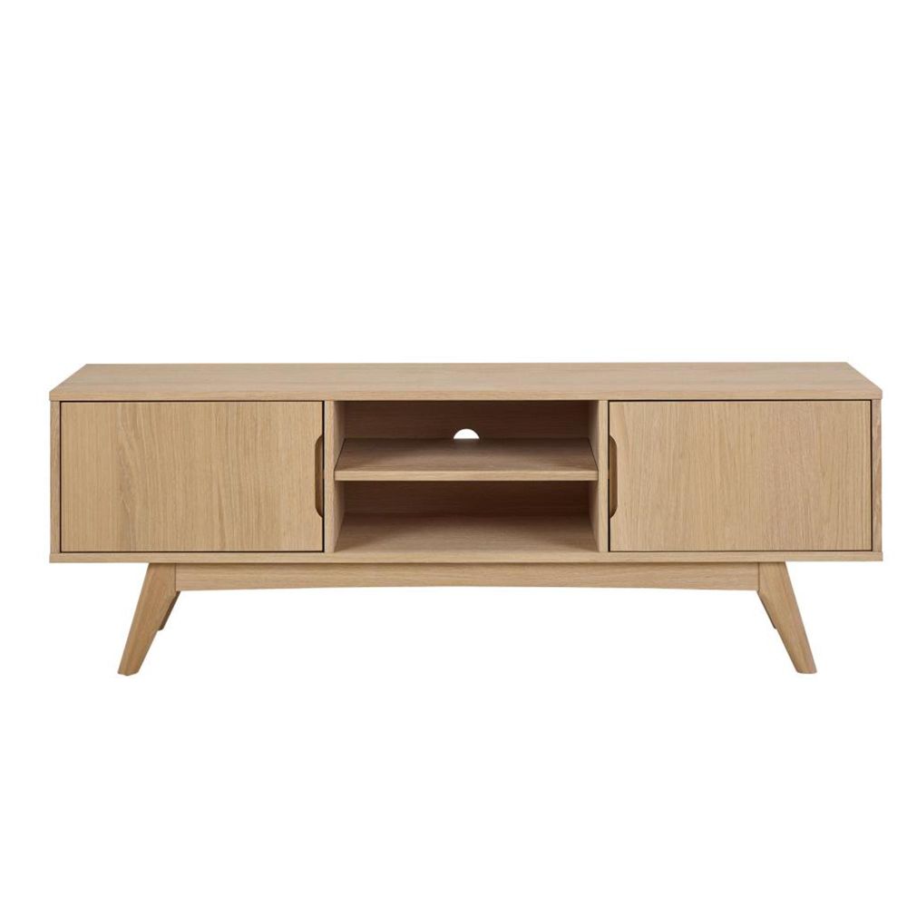 Item Code: 110168 Marte TV unit, top, frame, 2 doors, 3 shelves and base white pigmented oiled oak veneer with wire hole. Undeniably Scandinavian, this TV unit offers clean aesthetics, natural materials, and practical storage. Organising feels also easy with open and closed storage, 3 adjustable shelves, and a wire hole for cables. Besides, the white pigmented oil and oak veneer is a winning combination that blends seamlessly into any interior. FSC certified.Free Delivery