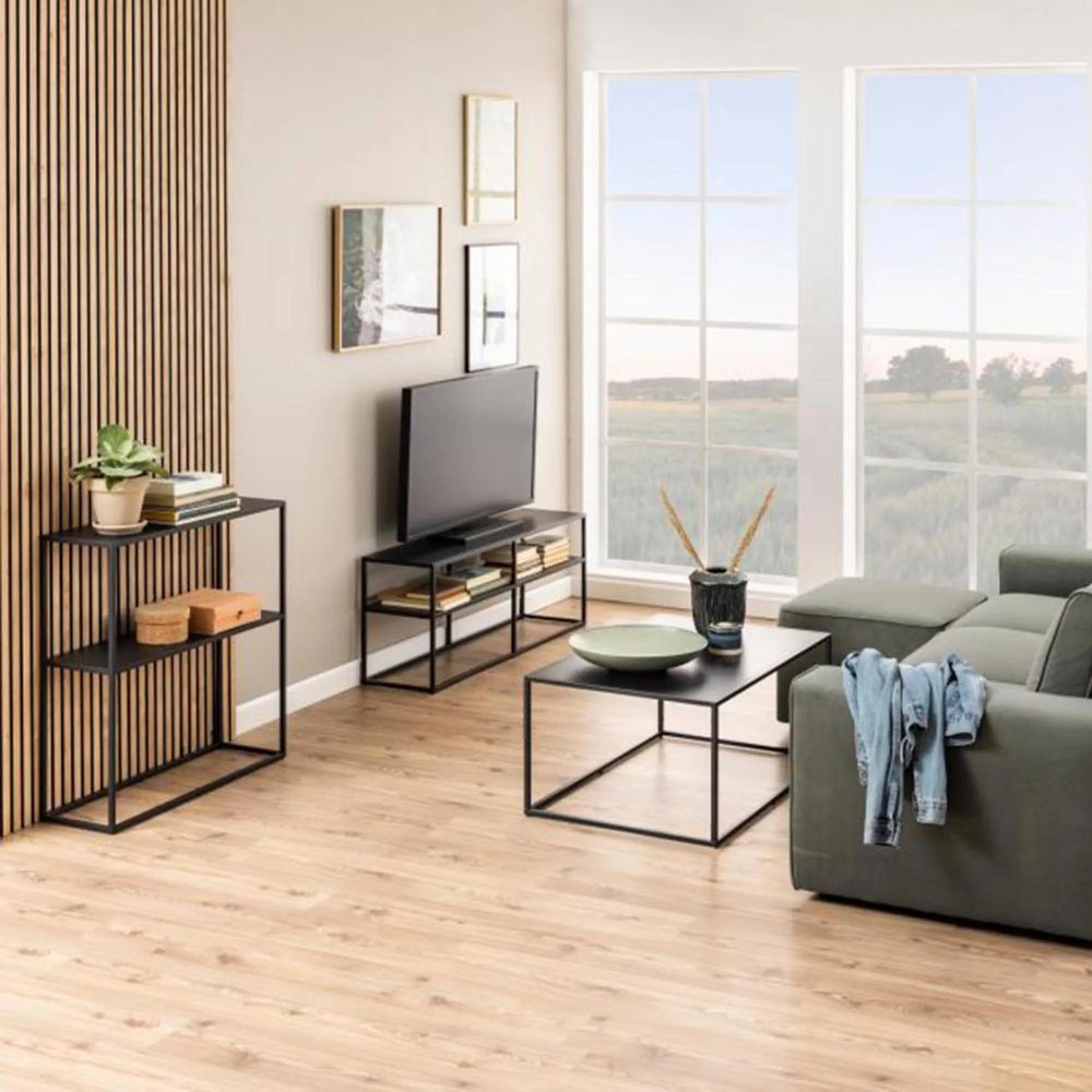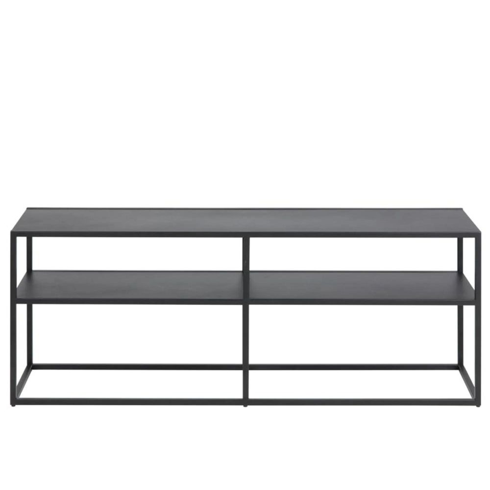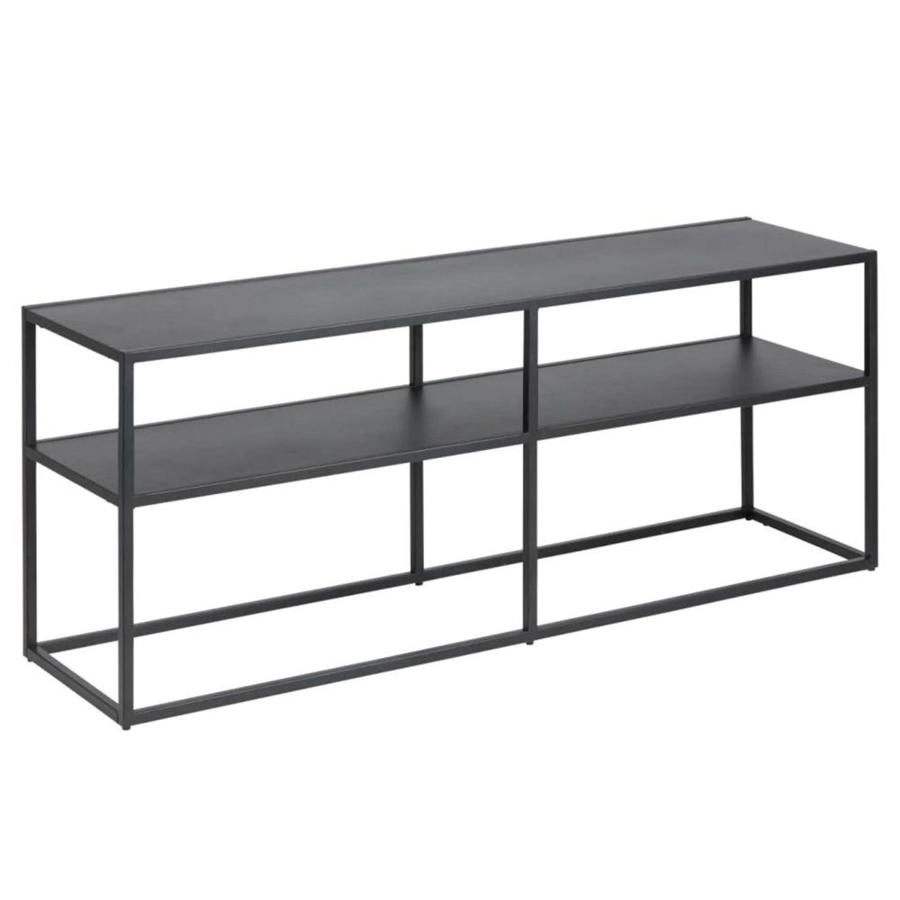 Item Code: 88334 Newton TV unit, top, frame, shelf and base matt black rough powder coated steel. Bring an industrial feel to your home with this top-to-toe metal TV unit. The rough powder coated metal brings a modern feel to the room and the narrow design will make it fit in anywhere. Use the TV unit as a cool way to upgrade your space and at the same time get some great storage space.Free Delivery