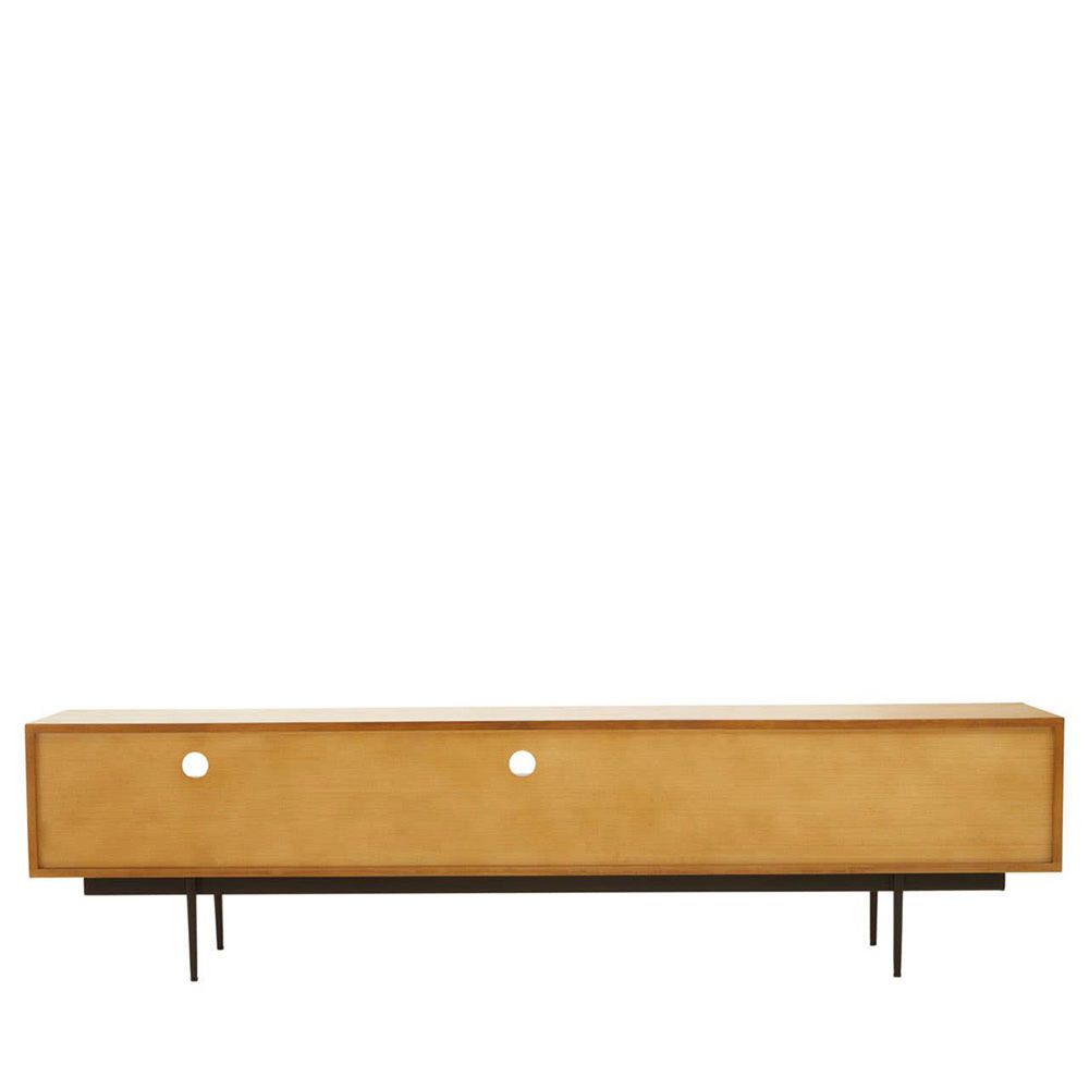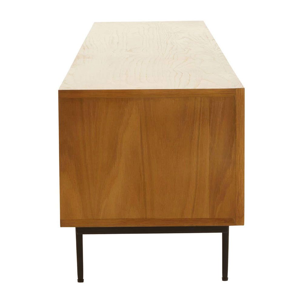 Item Code: 5528071 This Jakara media unit is a rustic accent piece with black metal legs.This wooden unit in natural finish has carved wood effect that makes a statement of abstract design. With the sleek metal legs in black colour, this unit complements the modern art.