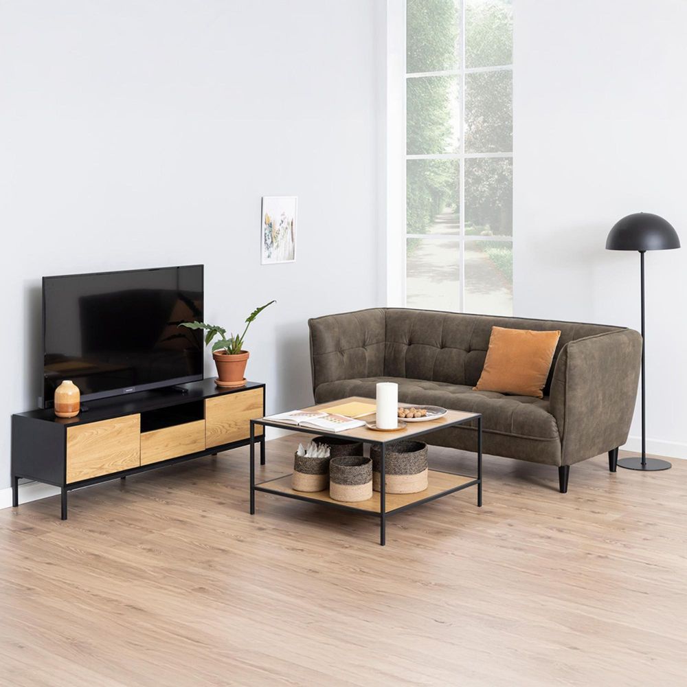 Seaford TV Unit - 2 Drawer - Storage - Oak and Black Metal
