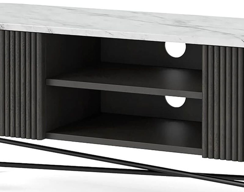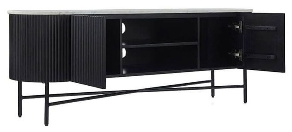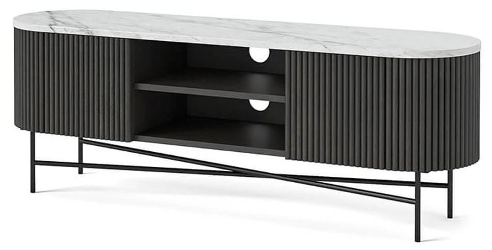 Lucas Black TV Unit - 150cm Fluted Curved - White Marble Top