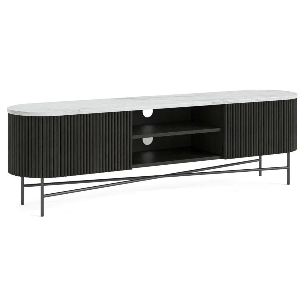 Lucas Black TV Unit - 180cm Fluted Curved - White Marble Top