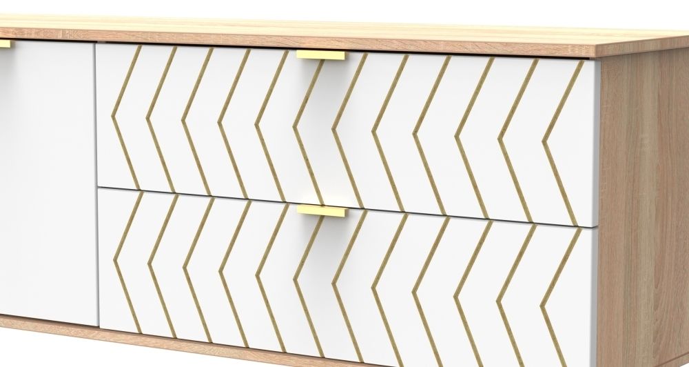 Jigsaw White and Oak Effect 145cm TV Unit with Gold Hairpin Legs