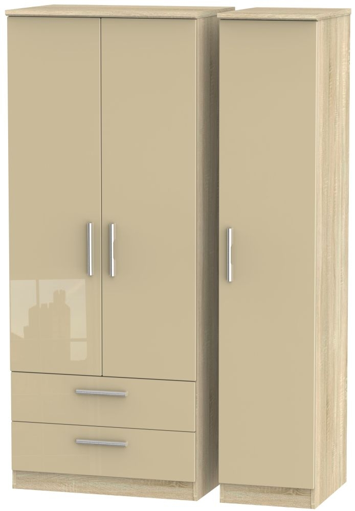 Knightsbridge Wardrobe - 3 Door - LHF 2 Drawers - Triple - Mushroom and Oak