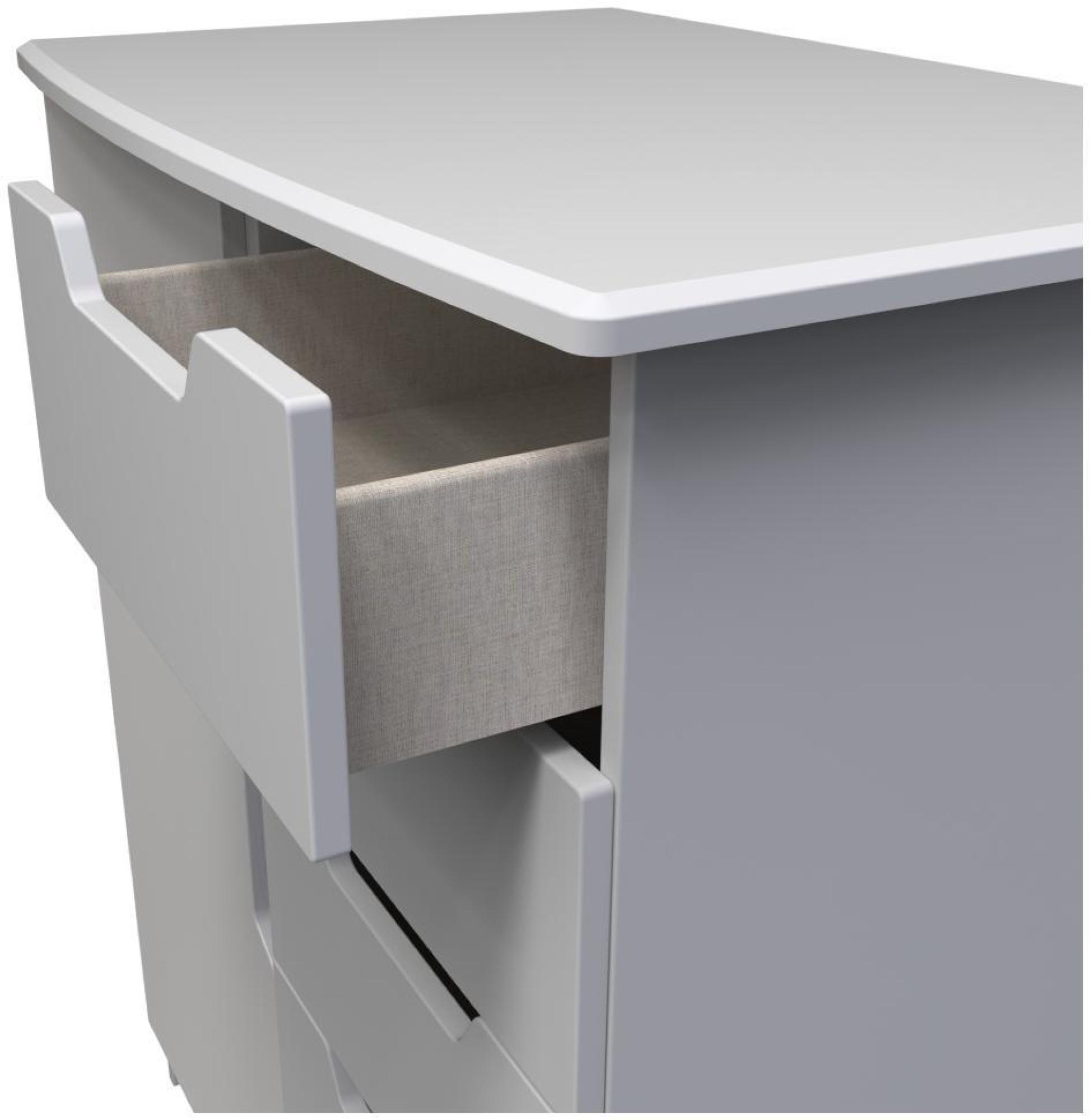 • Carcass: 18mm MFC furniture board, with ABS edging tapes (2mm)• Front: 18mm MDF , HTV Vinyl wrapped. With 2 mm edge. Routed pattern• Construction: Glued, dowelled and screwed. Metal KD fixings, castors wheel• Handle: Cut out vinyl wrapped• Door: 18mm MDF, HTV Vinyl wrapped. front with 2 mm edge• Hinge: Standard• Drawer:18mm MFC, HTV Vinyl wrapped . 3mm hardboard base, chipboard wrap with a 15mm wall. Soft close.• Top: 18mm MDF, HTV Vinyl Wrapped• Drawer Runner: Soft close York runner