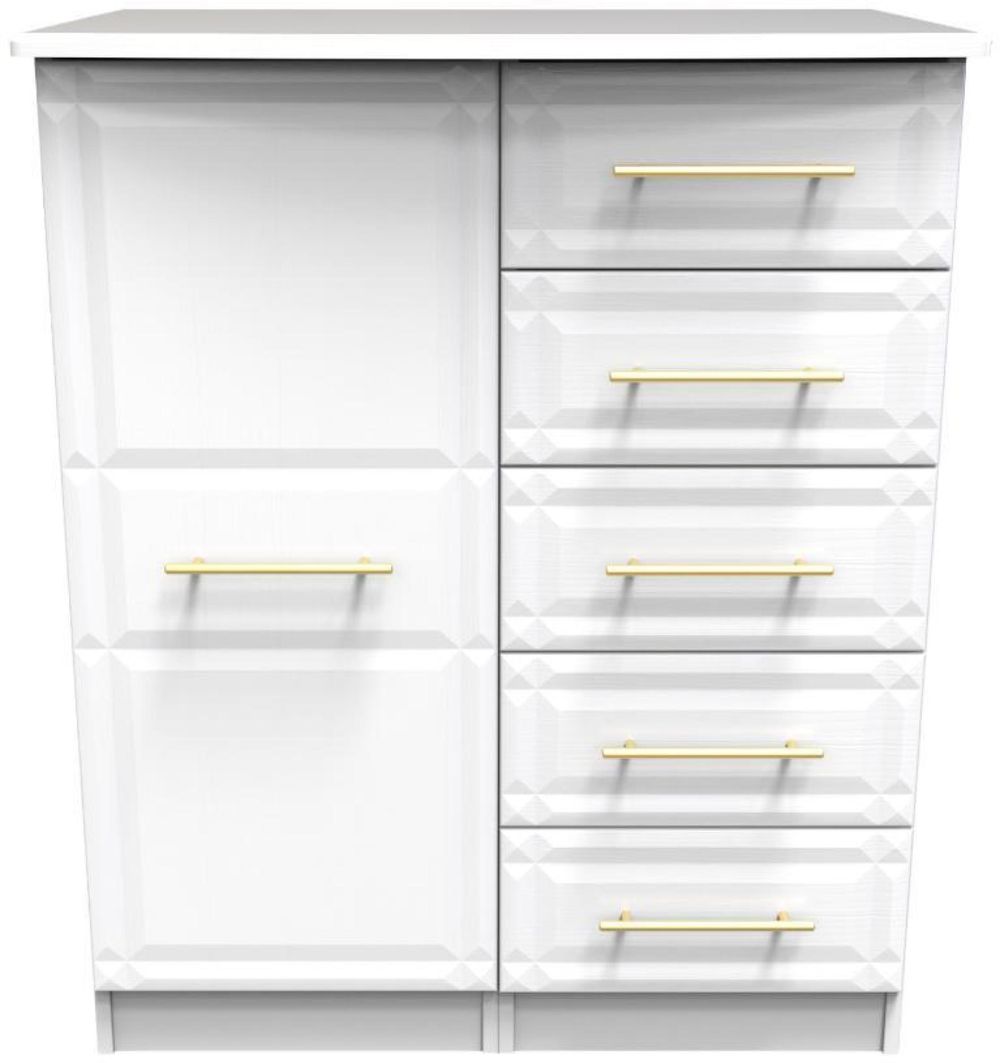 Chamfered edges combined with contemporary and modern styling create the Faye range. This stylish range is available in a selection of durable scratch resistant wood effect or matt finishes. With gold T-Bar handles on all doors and drawers.