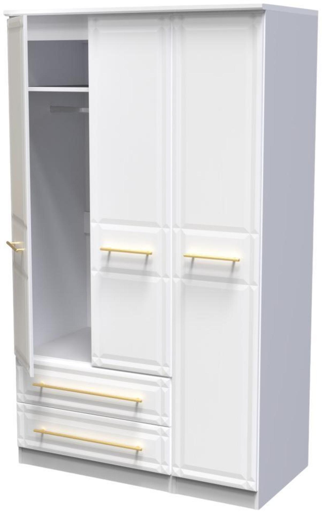 Faye White 3 Door Triple Wardrobe - LHF 2 Drawers