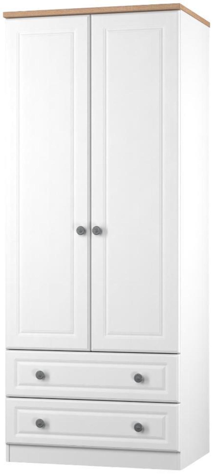 Norfolk Wardrobe - 2 Door - 2 Drawer - Double - White and Oak