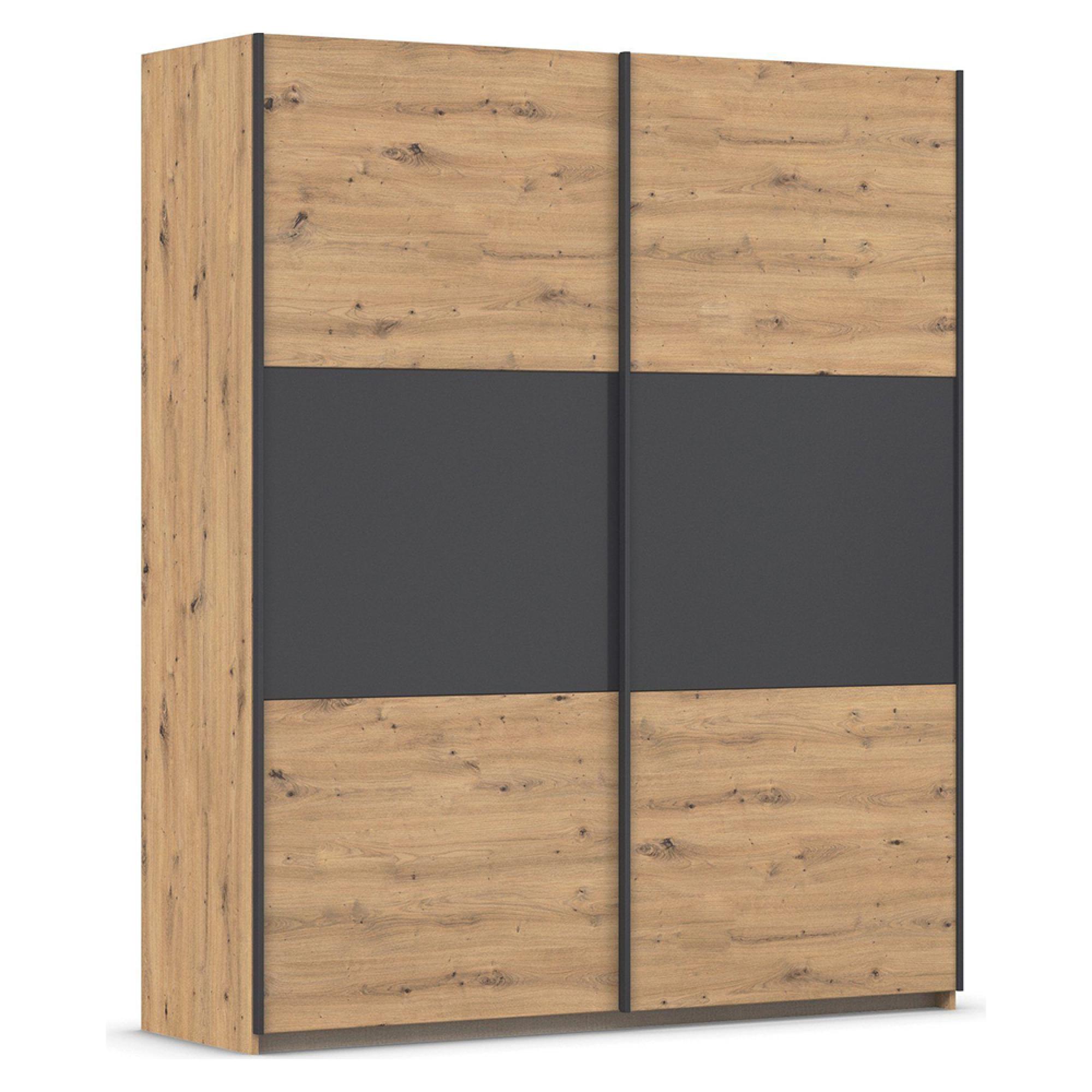 Rauch Neo 175cm 2 Door Sliding Wardrobe - Artisan Oak and Metallic Dark Grey