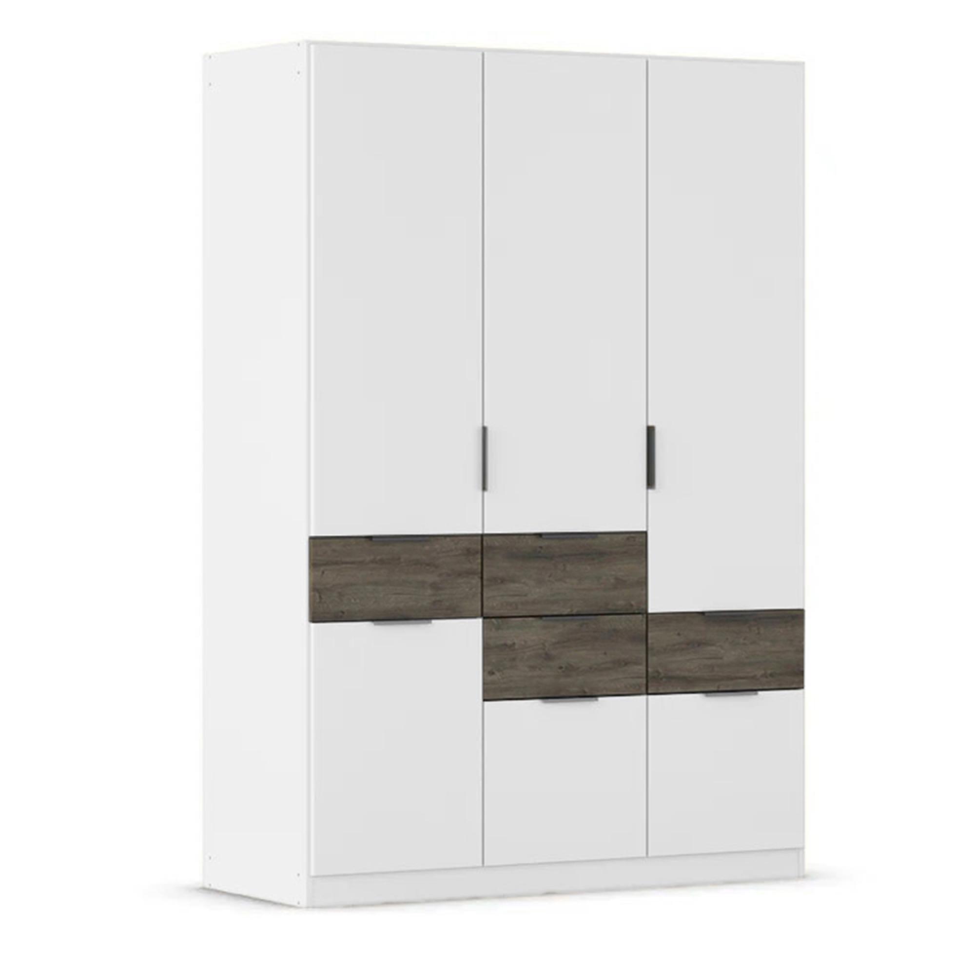 Rauch Mats 136cm 4 Door Wardrobe with Drawer - Alpine White and Atlantic Dark Oak