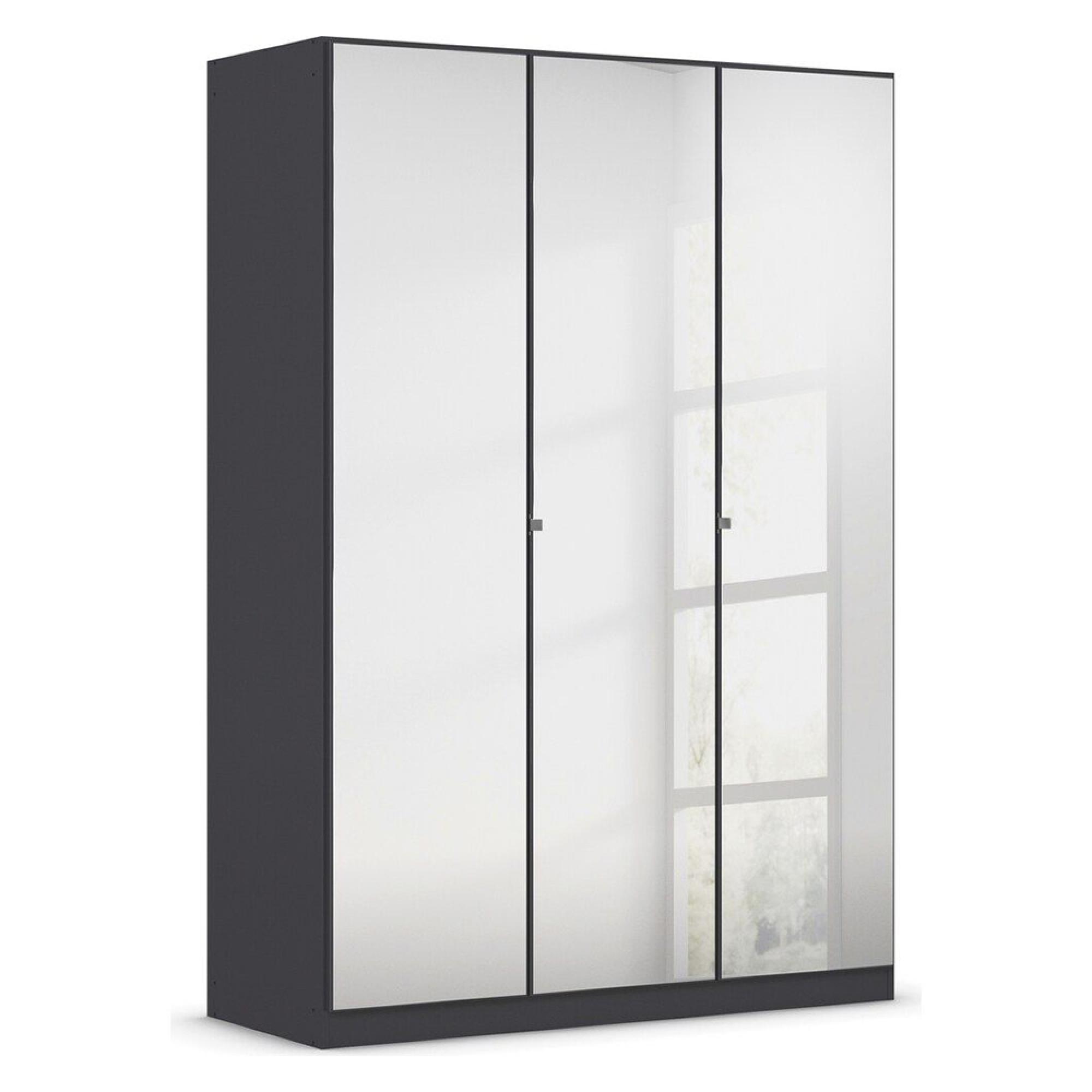 Rauch Reflect 136cm 3 Door Mirrored Wardrobe with Interior Division - Metallic Dark Grey