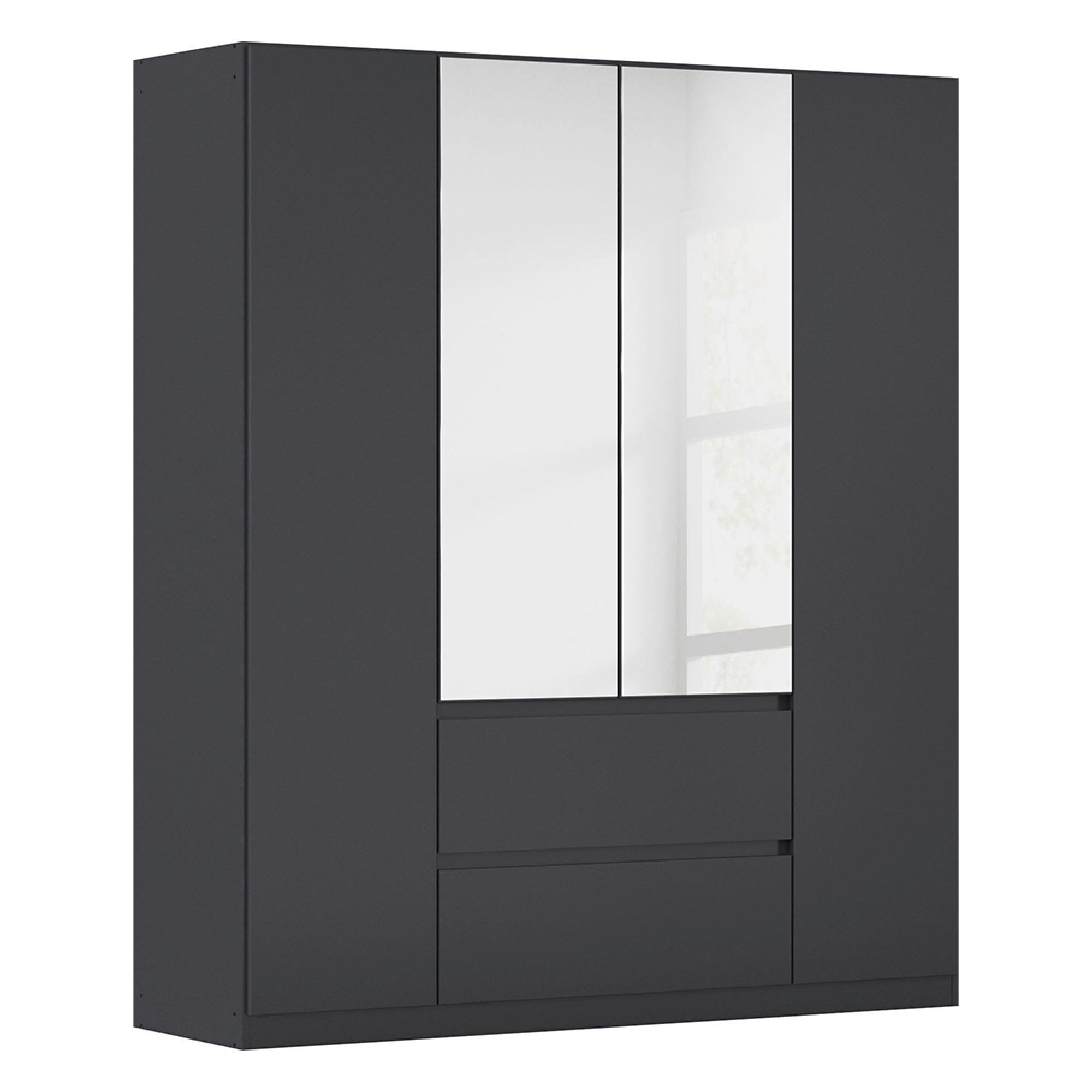 Rauch Mainz Plus 181cm 4 Door Combi Wardrobe - Metallic Dark Grey and Grey High Gloss
