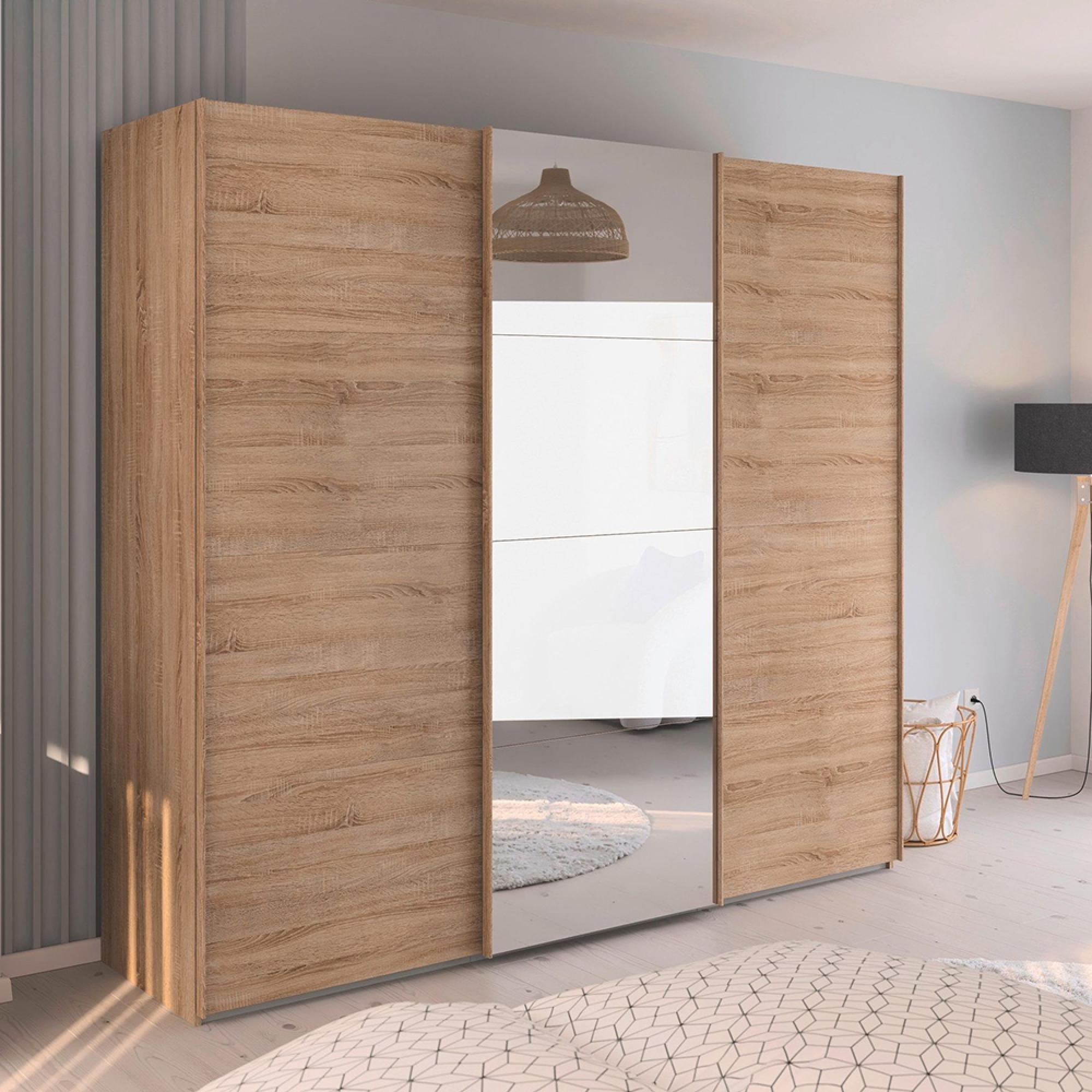 Rauch Evelyn 242cm 3 Door Sliding Wardrobe with Mirror - Sonoma Oak