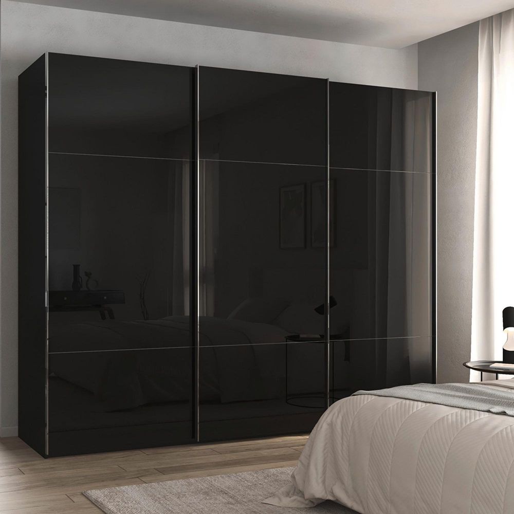 Contido Sliding Wardrobe - 271cm - 3 Door - with Extras - Black Glass