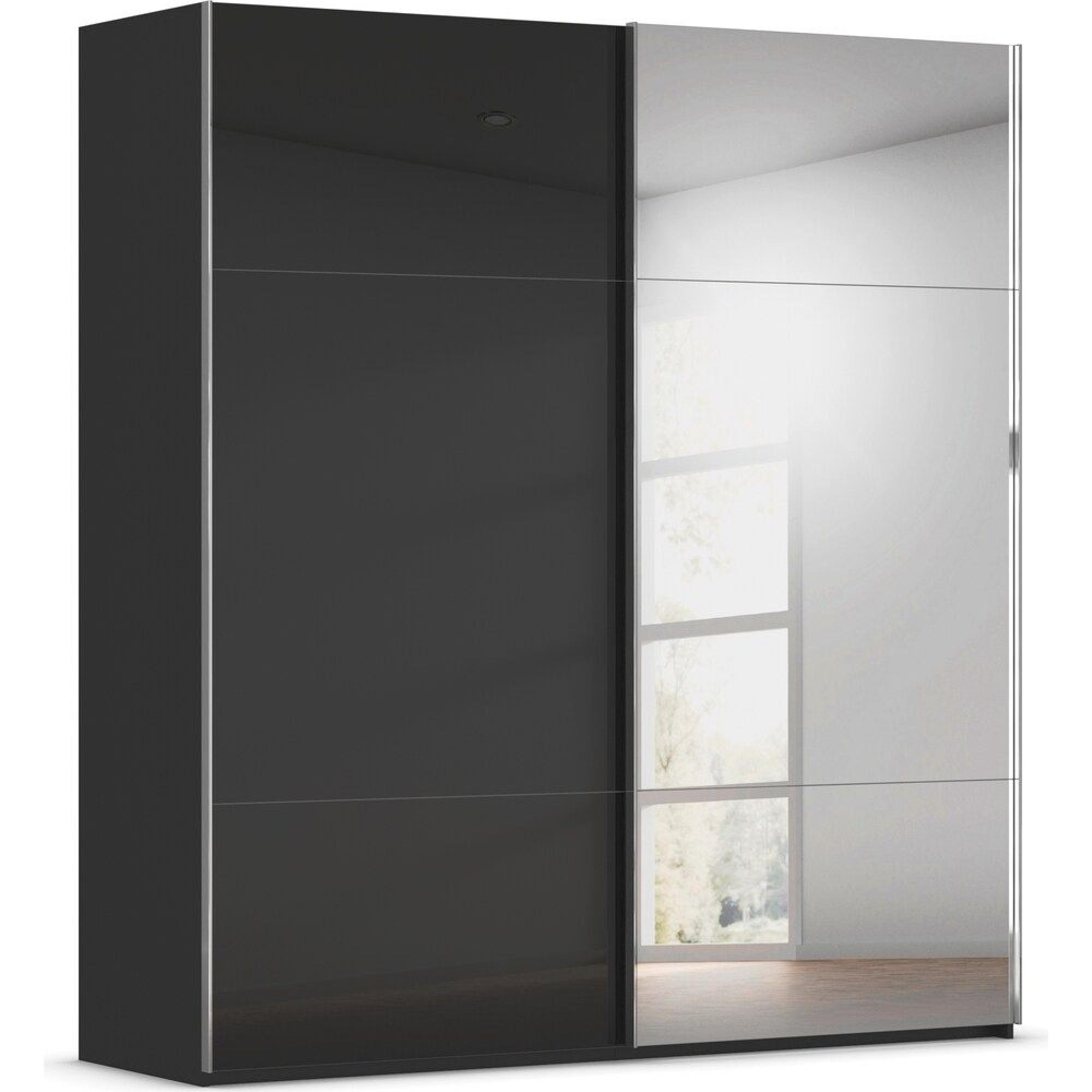 Contido Sliding Mirror Wardrobe - 201cm - 2 Door - with Extras - Black Glass