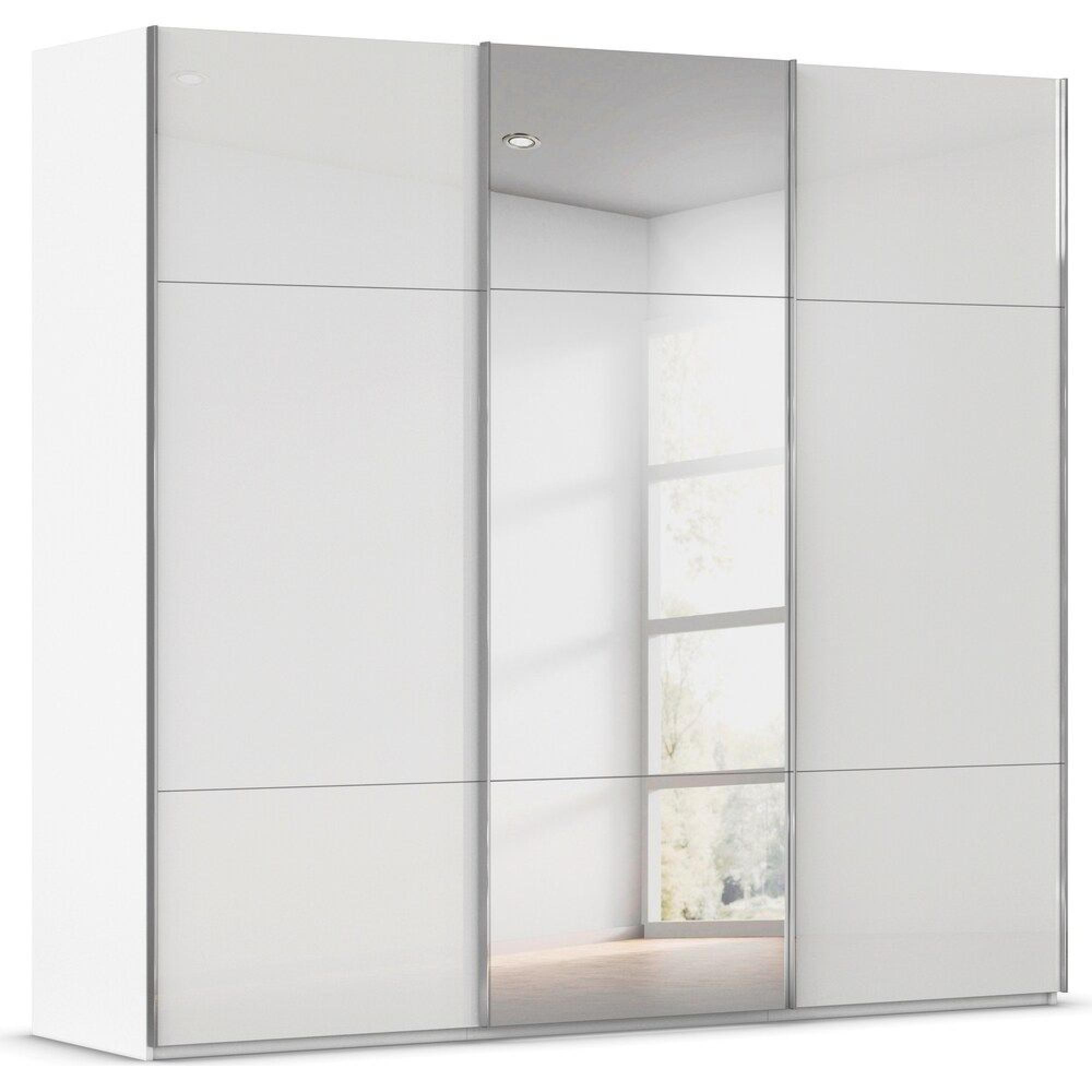 Rauch Contido 242cm 3 Door Sliding Mirror Wardrobe with Extras - Crystal White Glass