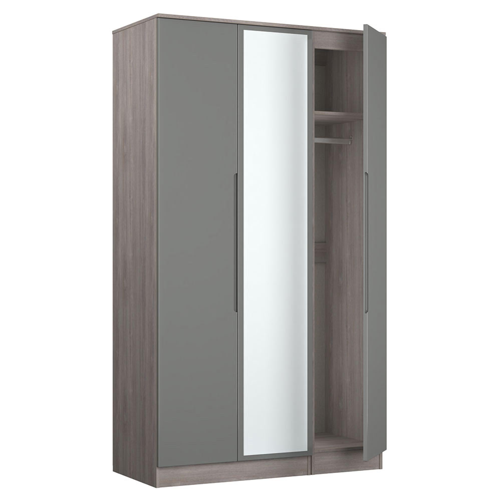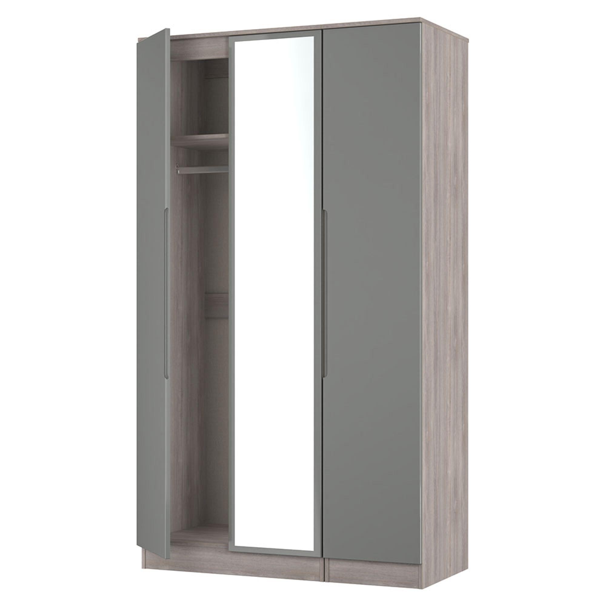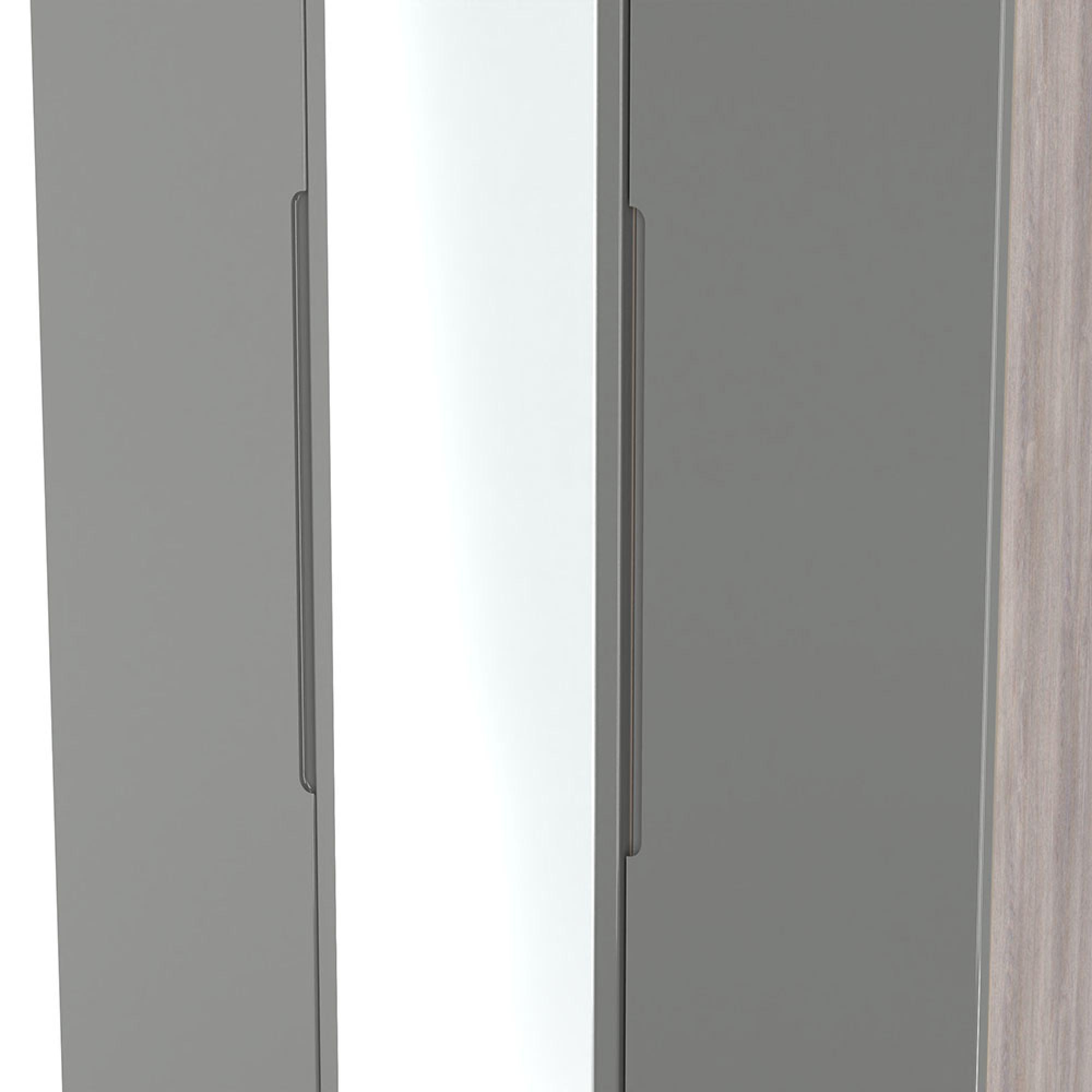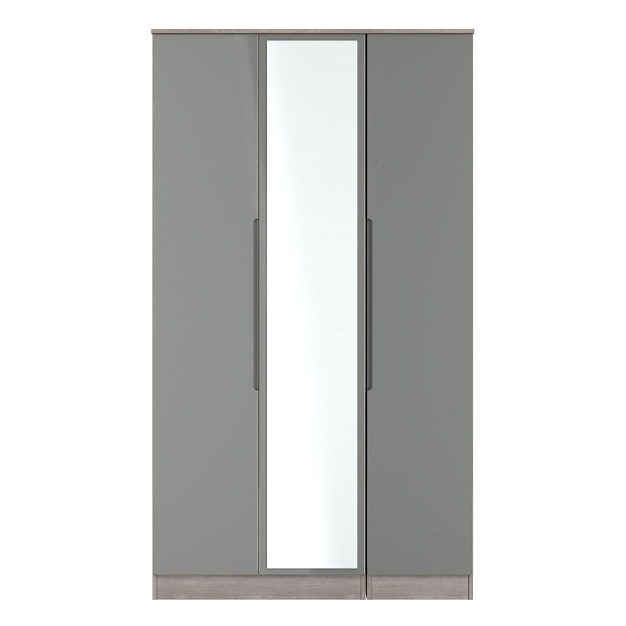 Milan Grey Gloss and Grey Oak 3 Door Tall Triple Wardrobe - 1 Mirror