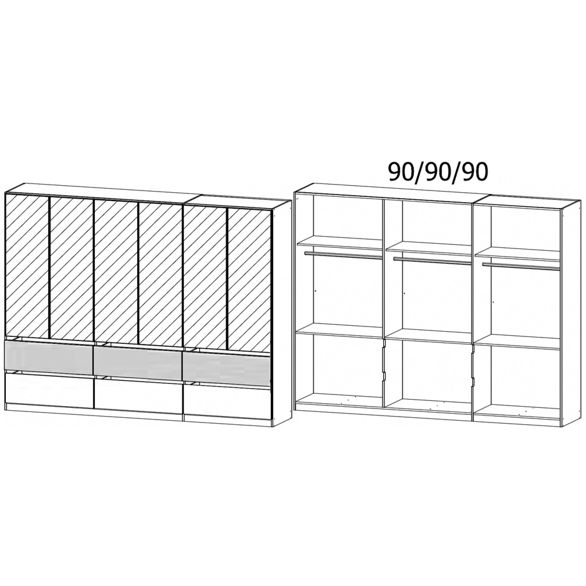 Rauch Winnipeg 271cm 6 Door Wardrobe with Mirror - Alpine White and Halifax Oak