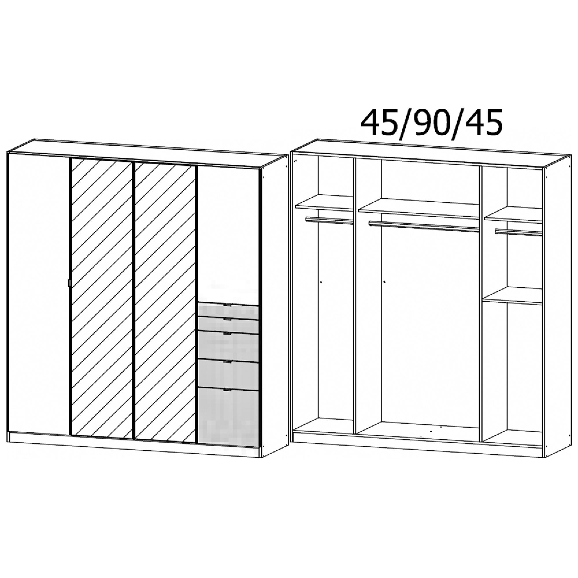 Ontario Wardrobe - 181cm - 4 Door - Combi - Metallic Dark Grey & Sonoma Oak