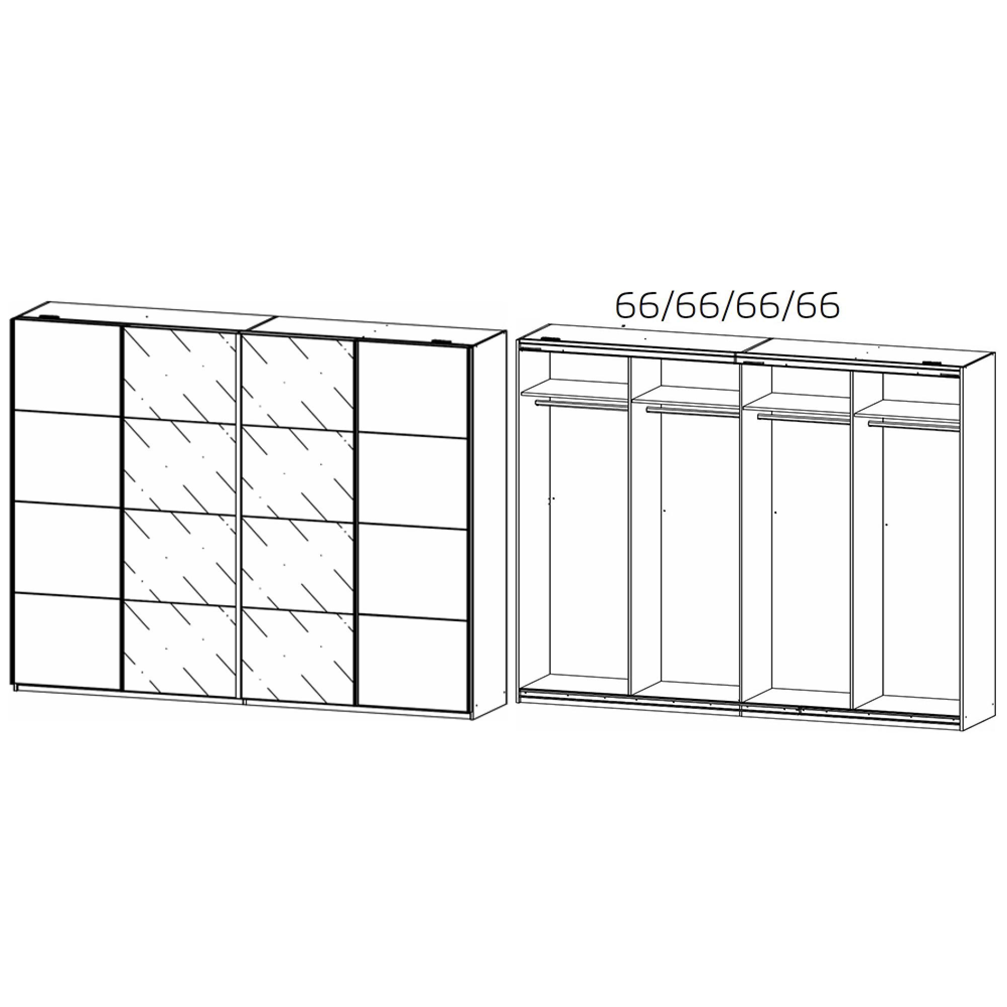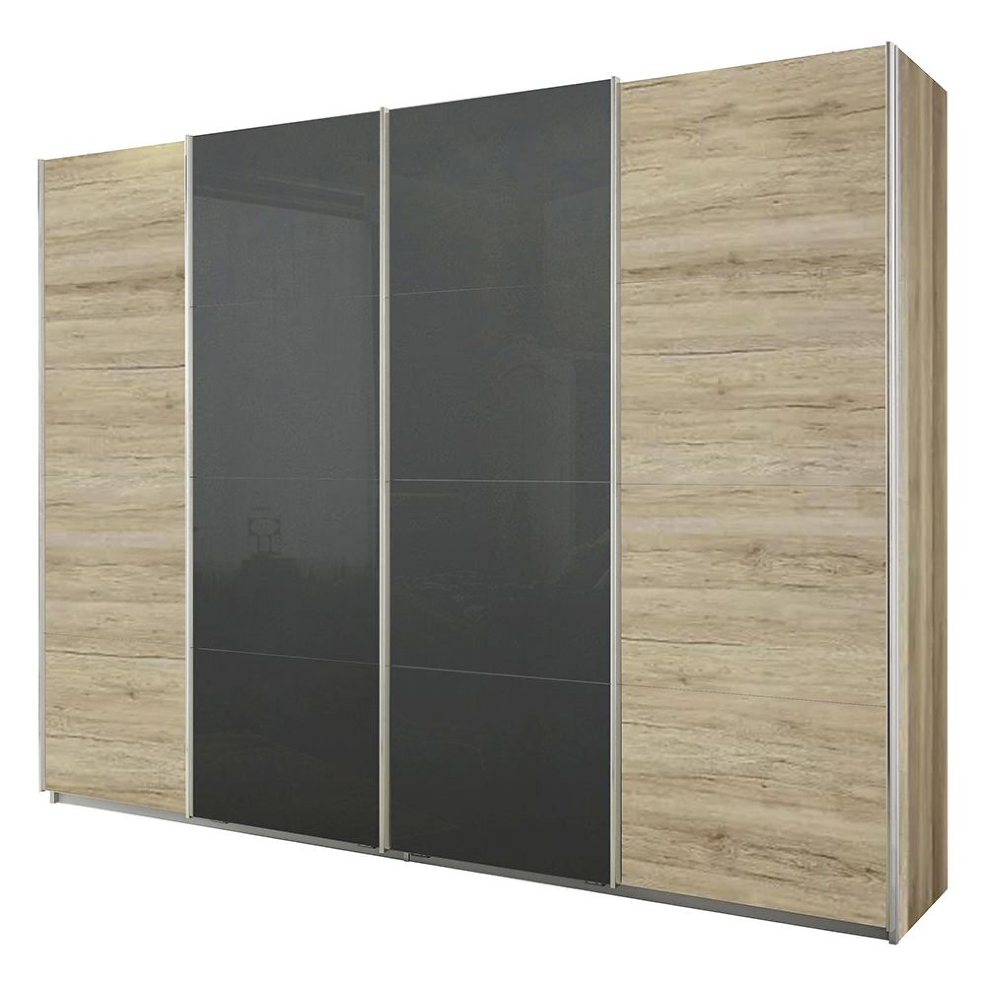 Rauch Syncrono 271cm 4 Door Sliding Wardrobe - Sanremo Oak Light and Basalt Glass