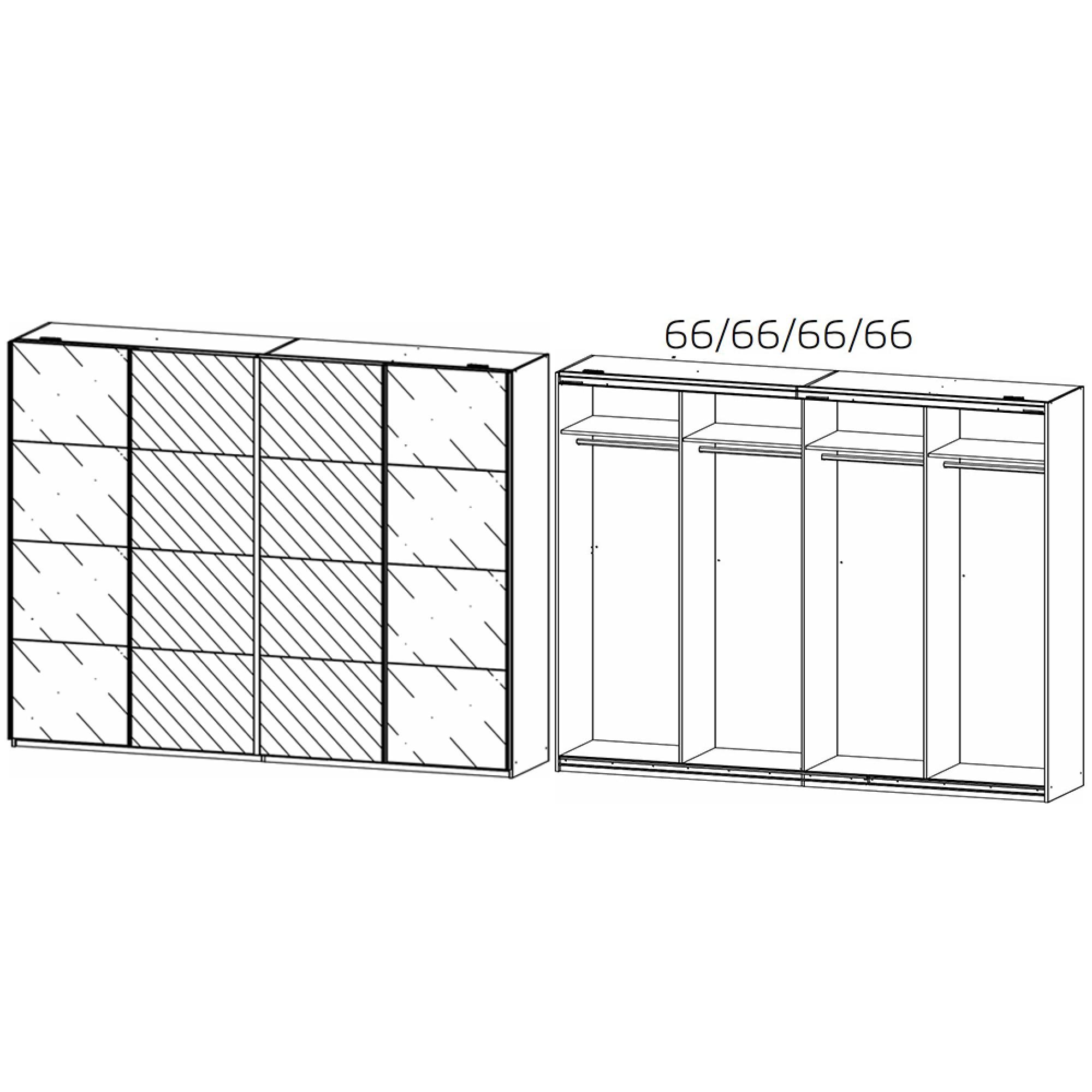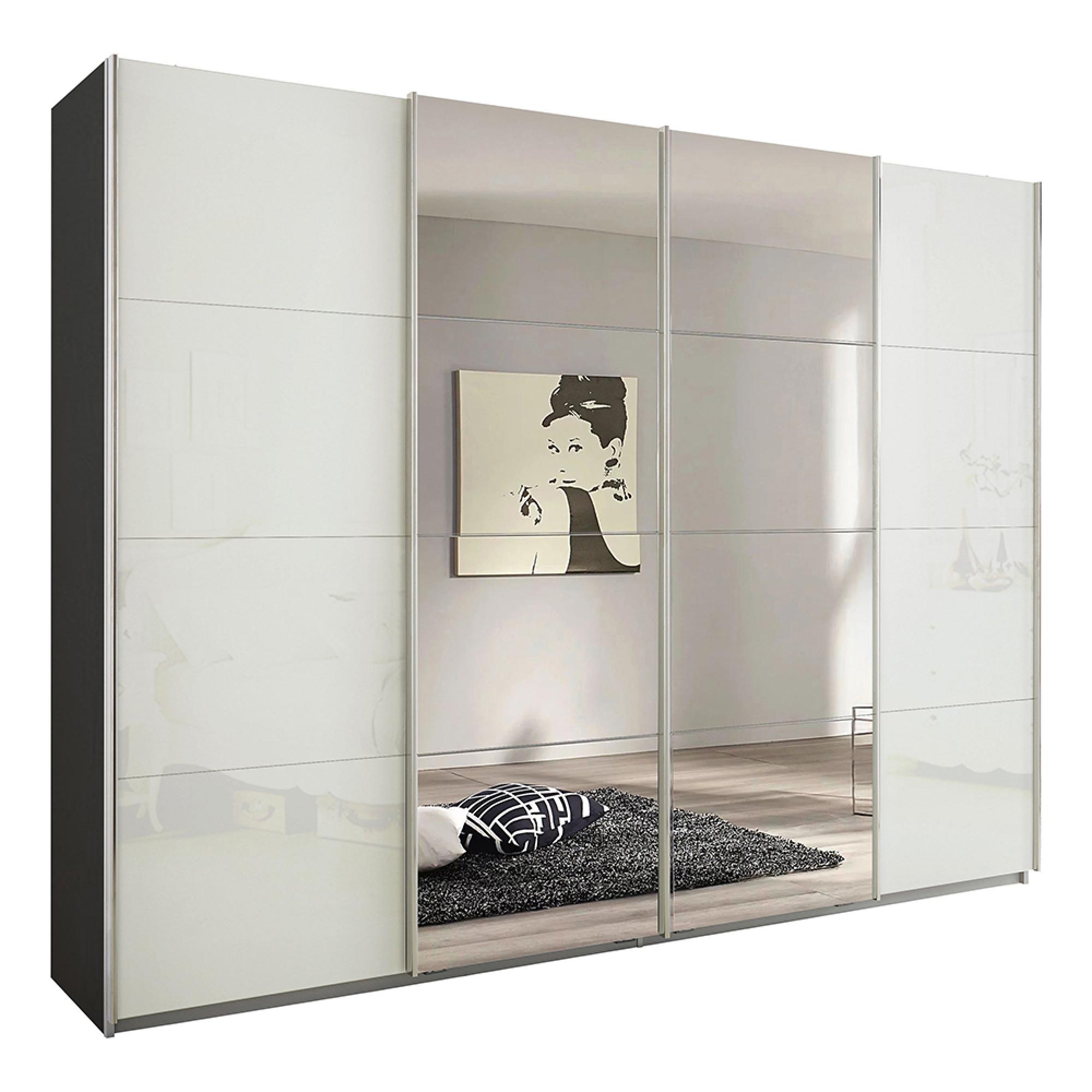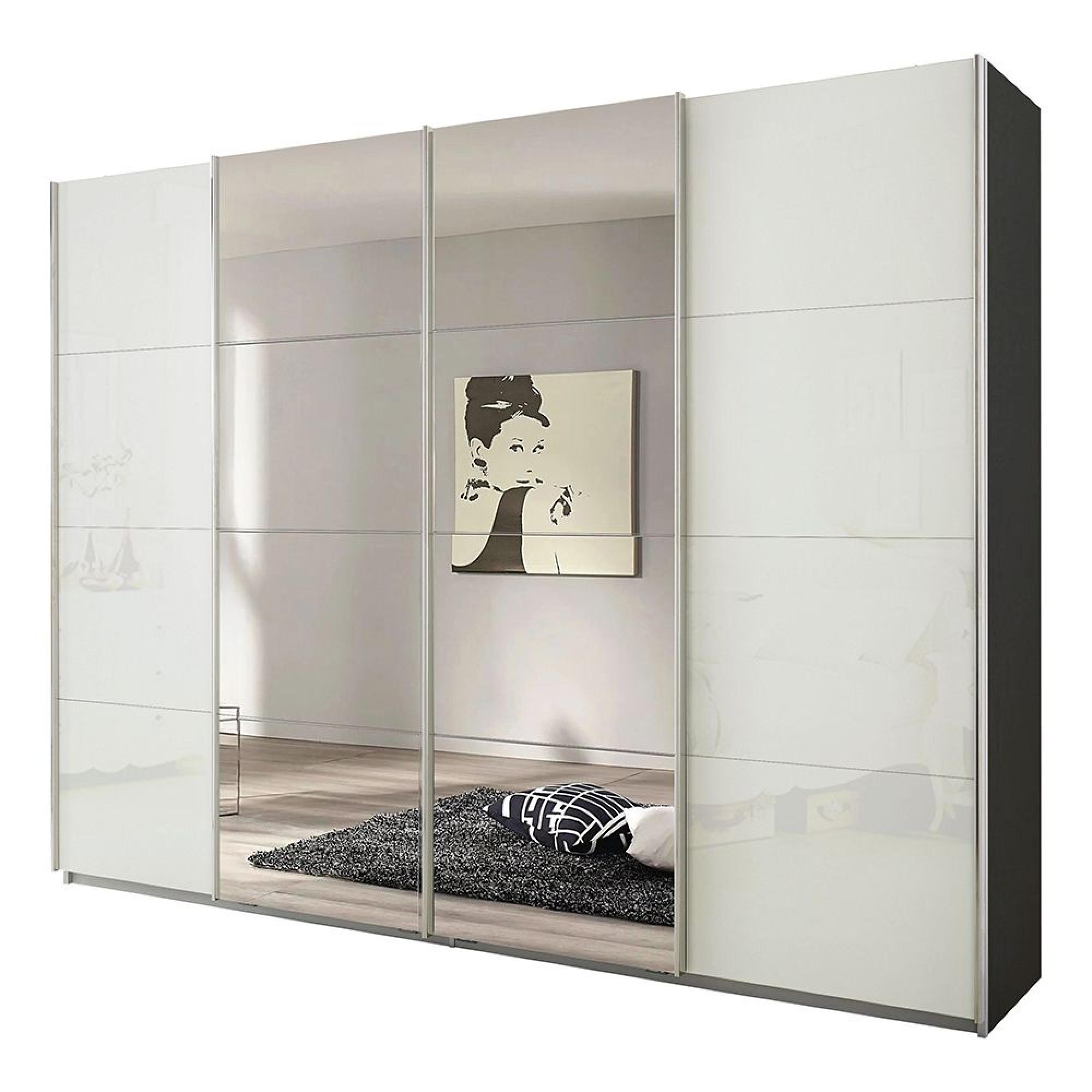 Rauch Syncrono 271cm 4 Door Sliding Wardrobe with Mirror - Metallic Dark Grey and White Glass
