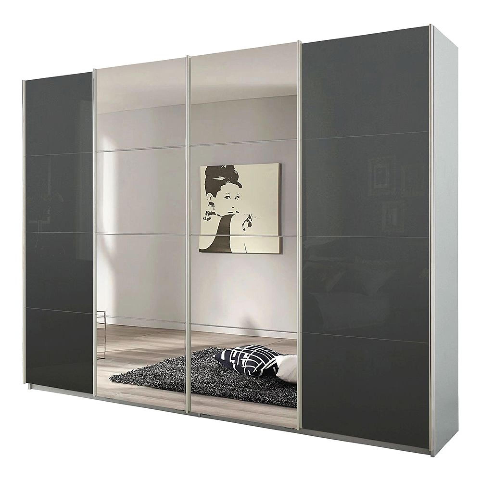 Rauch Syncrono 271cm 4 Door Sliding Wardrobe with Mirror - Silk Grey and Basalt Glass