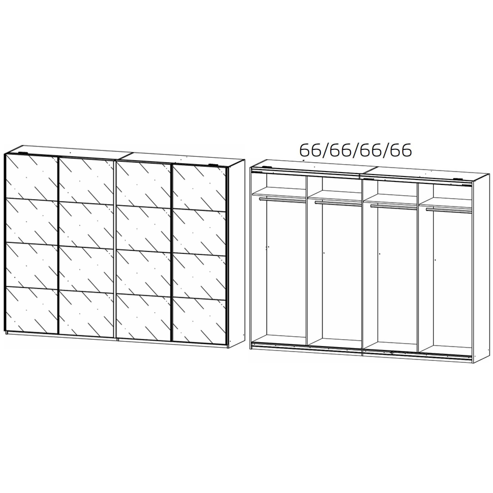 Rauch Syncrono 271cm 4 Door Glass Sliding Wardrobe - Artisan Oak and Silk Grey