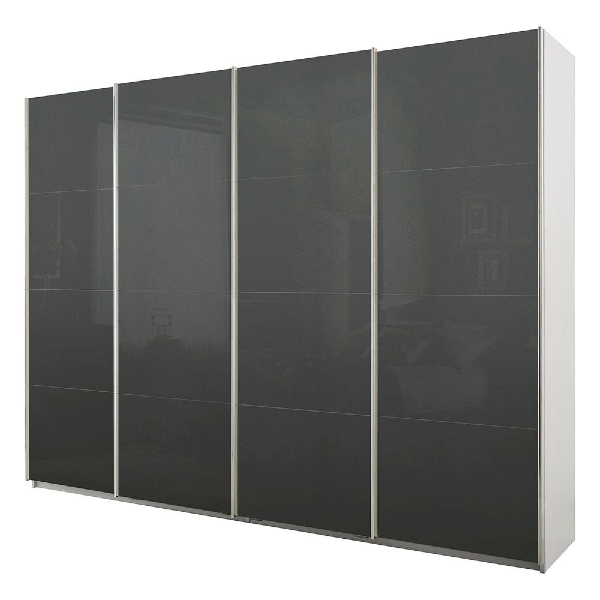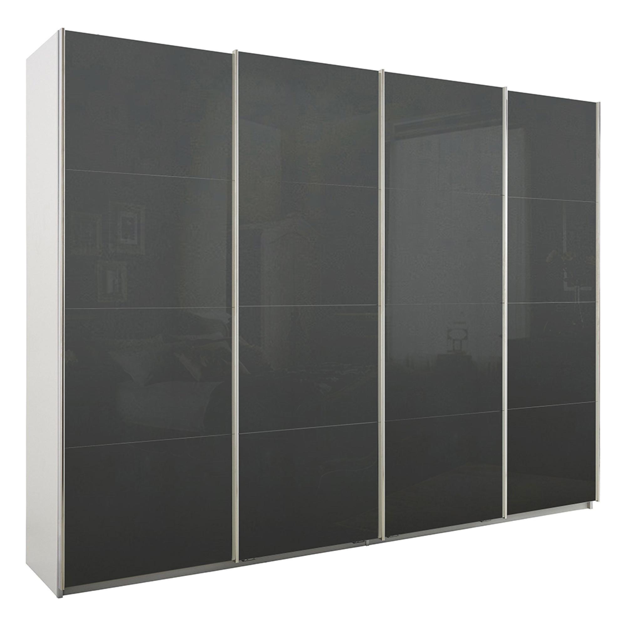 Rauch Syncrono 271cm 4 Door Glass Sliding Wardrobe - Alpine White and Basalt