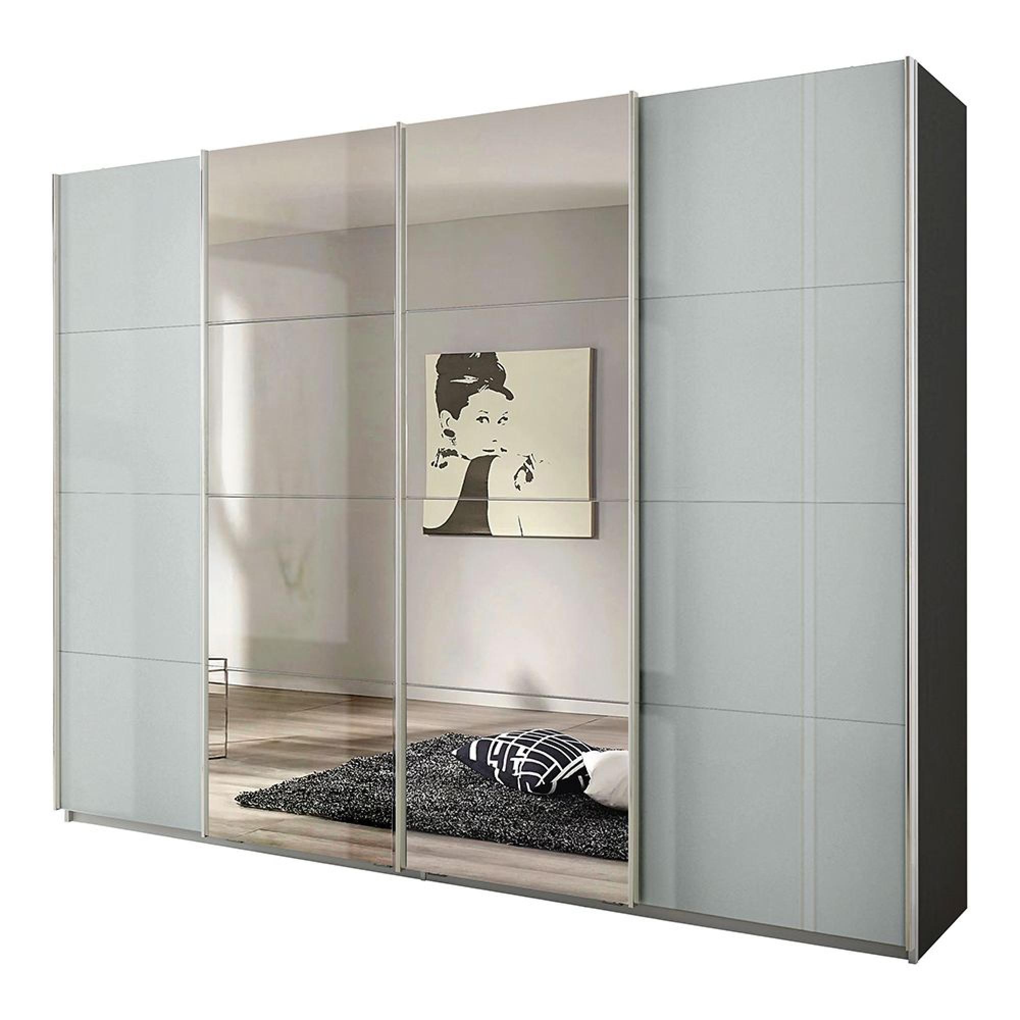 Rauch Syncrono 271cm 4 Door Sliding Wardrobe with Mirror - Metallic Dark Grey and Grey High Gloss