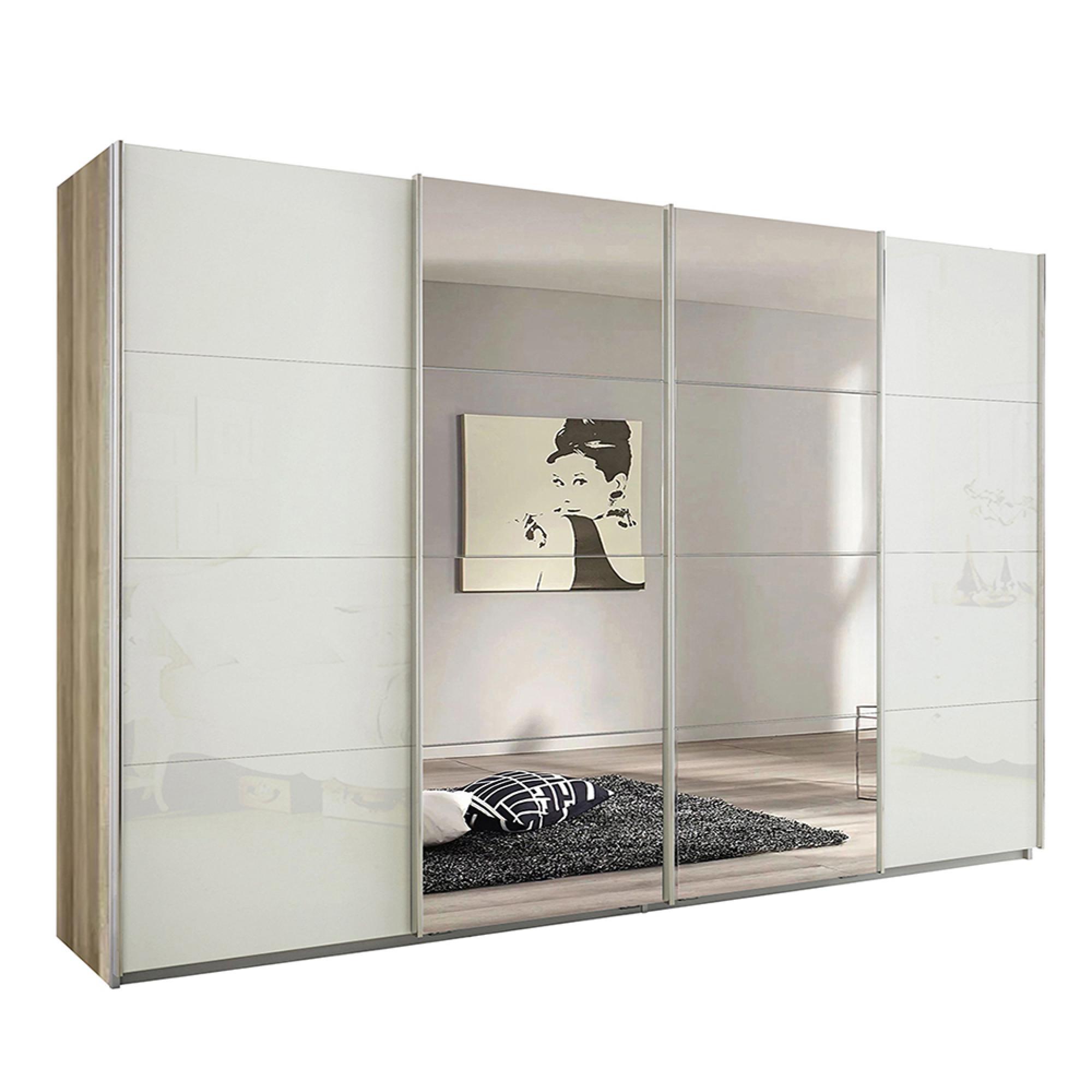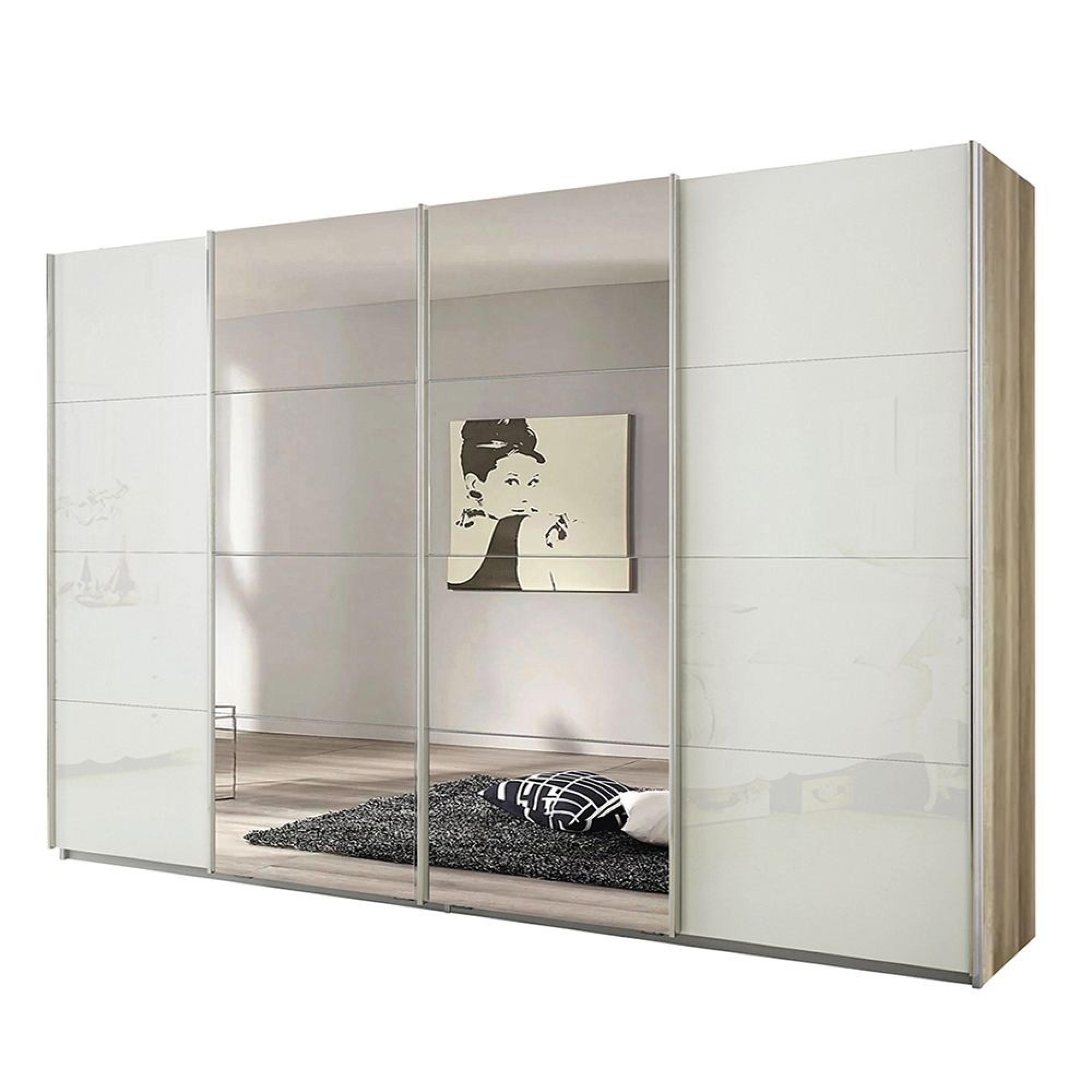 Rauch Syncrono 316cm 4 Door Sliding Wardrobe with Mirror - Sanremo Oak Light and White Glass