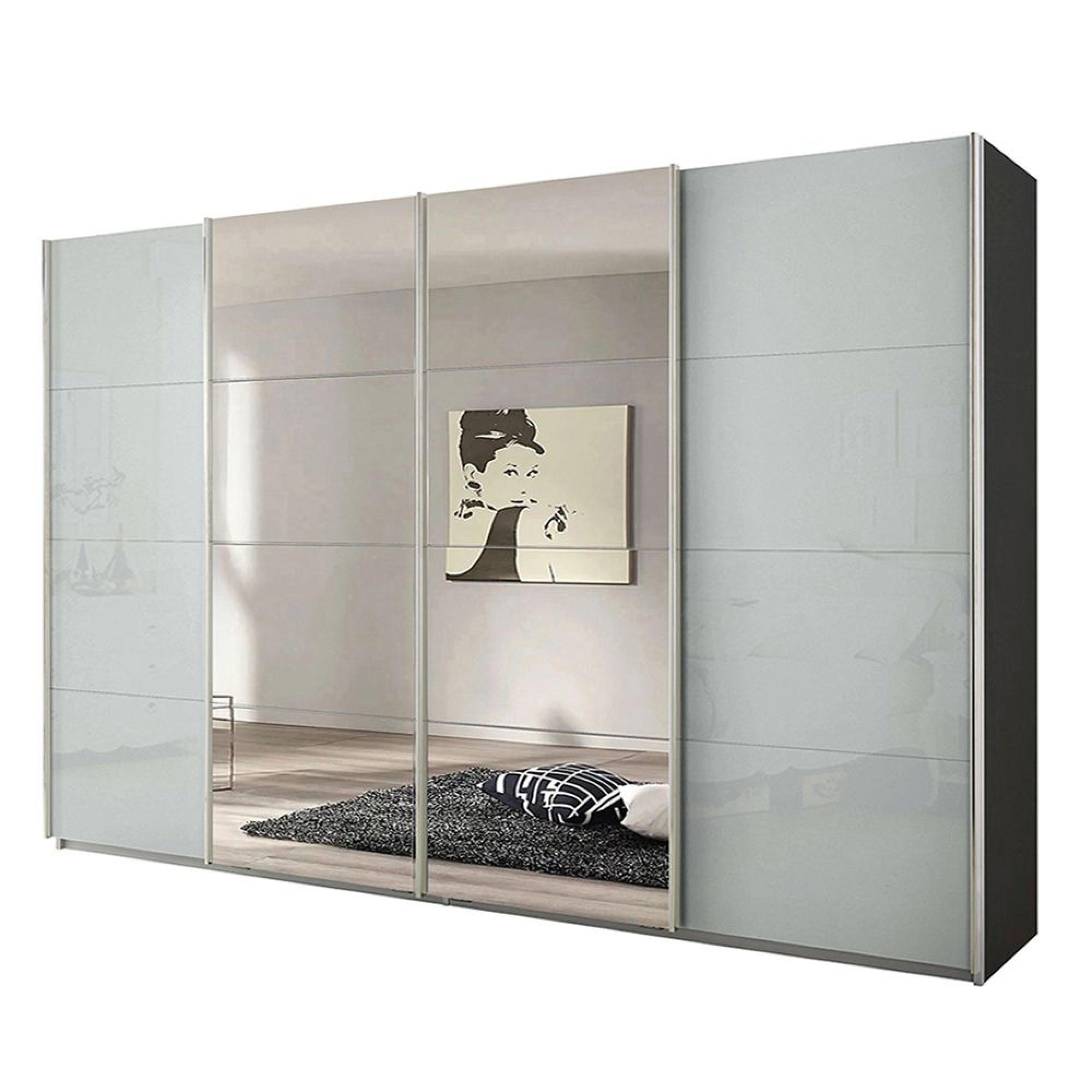 Rauch Syncrono 316cm 4 Door Sliding Wardrobe with Mirror - Metallic Dark Grey and Silk Grey Glass