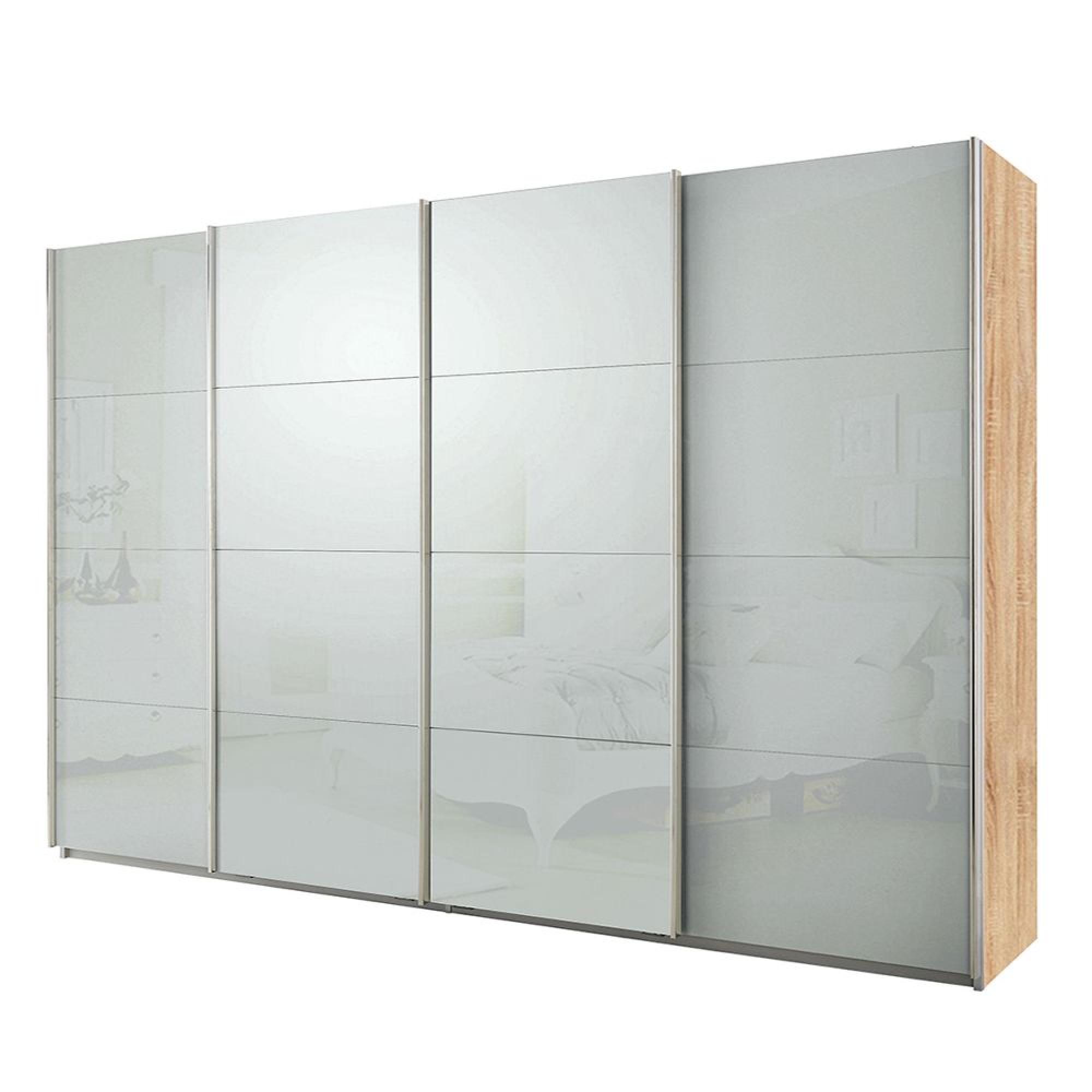 Rauch Syncrono 316cm 4 Door Glass Sliding Wardrobe - Sonoma Oak and Silk Grey