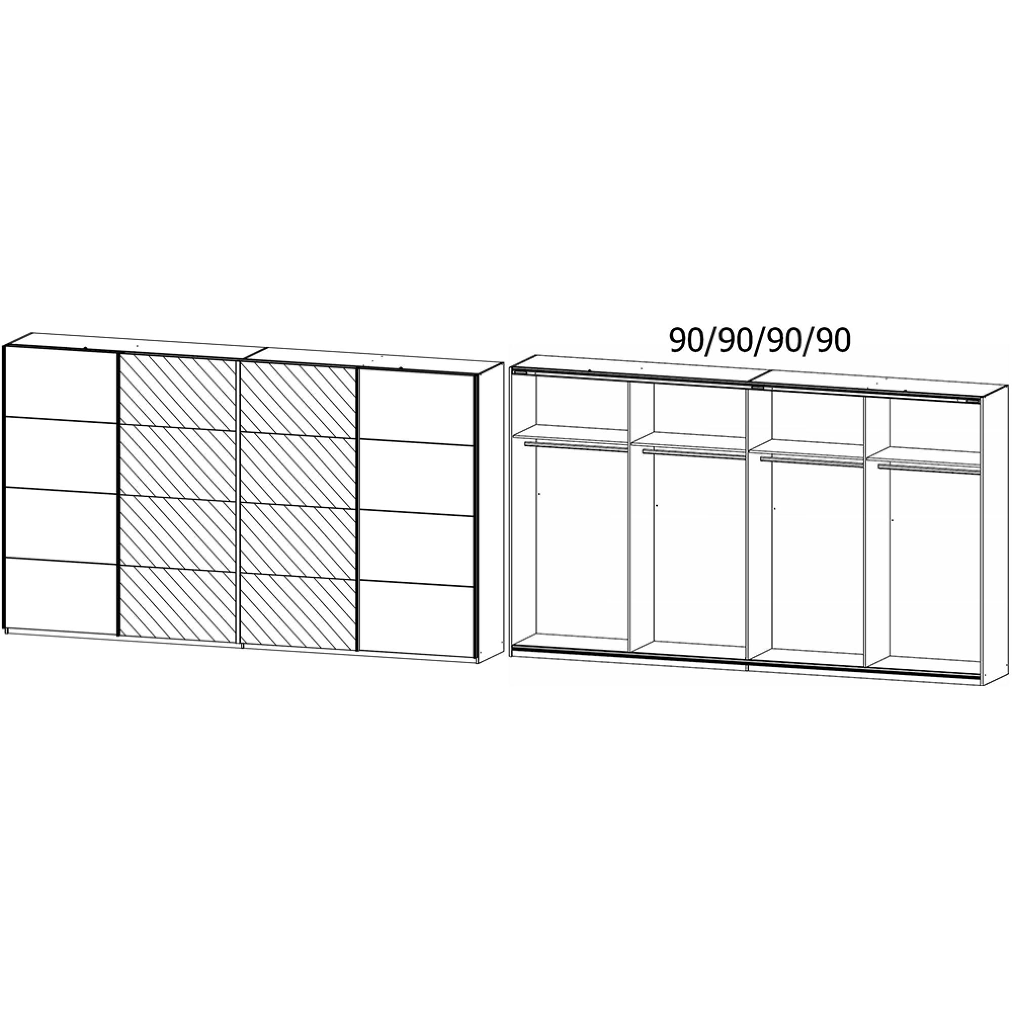 Rauch Syncrono 361cm 4 Door Sliding Wardrobe with Mirror - Silk Grey