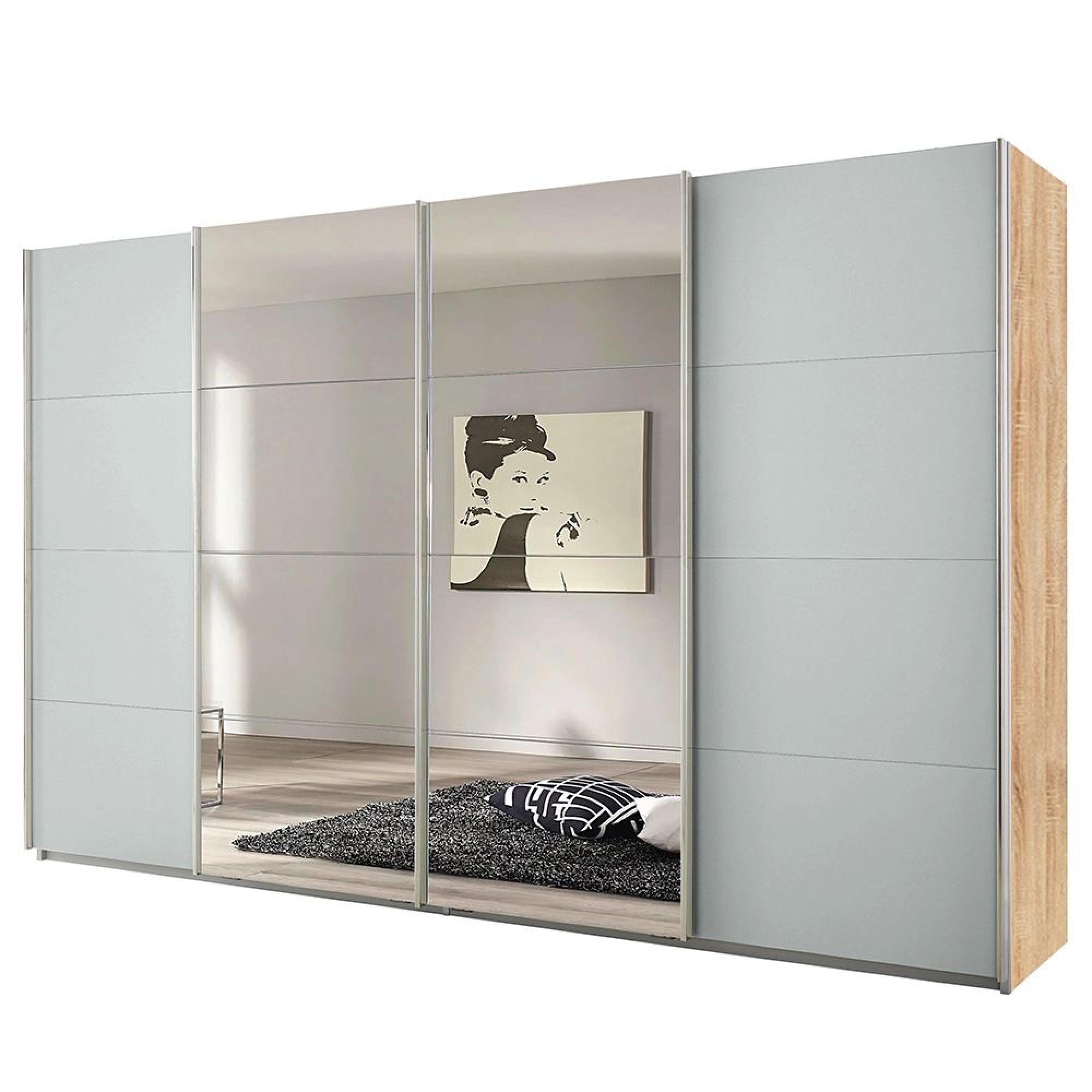 Rauch Syncrono 361cm 4 Door Sliding Wardrobe with Mirror - Sonoma Oak and Silk Grey