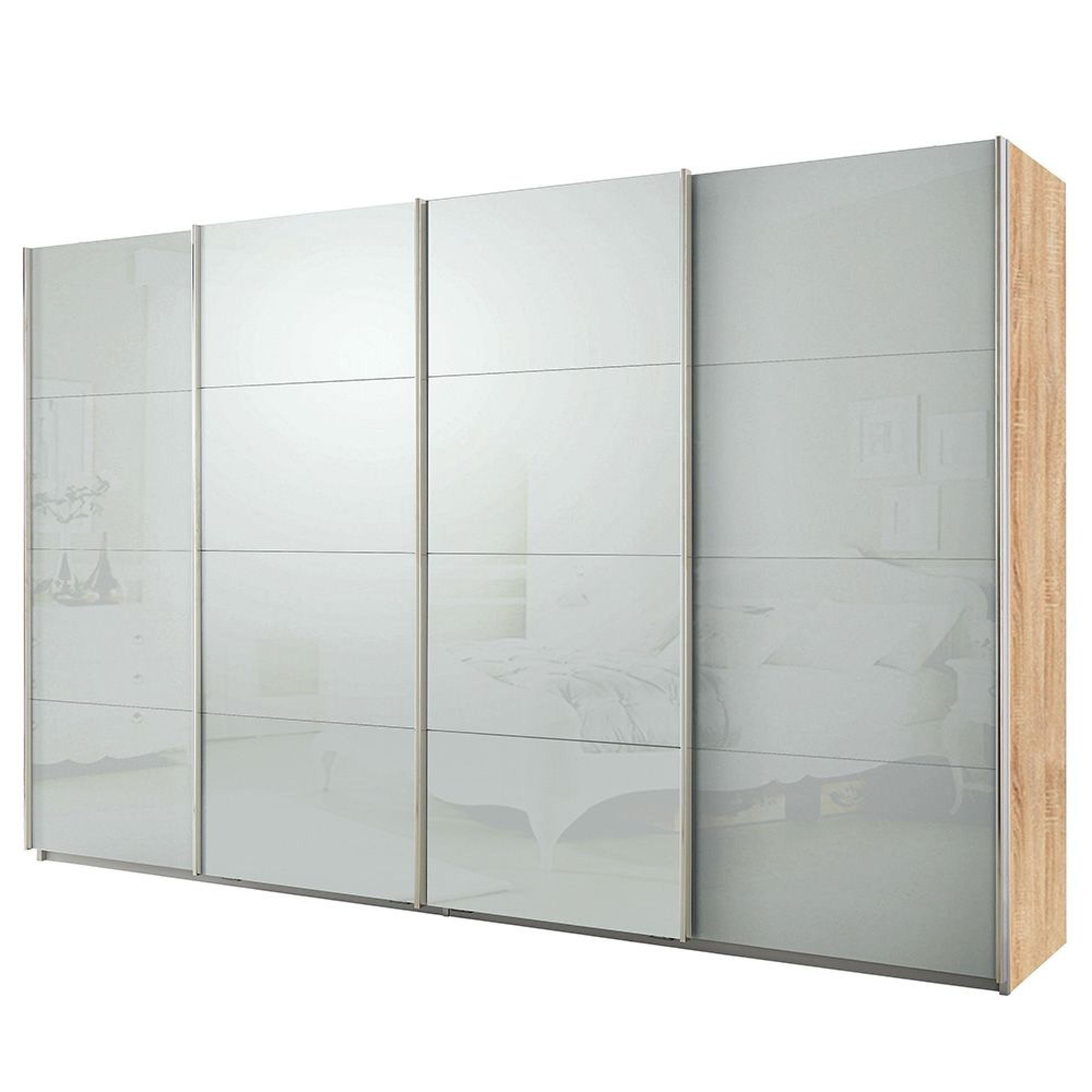 Rauch Syncrono 361cm 4 Door Glass Sliding Wardrobe - Sonoma Oak and Silk Grey