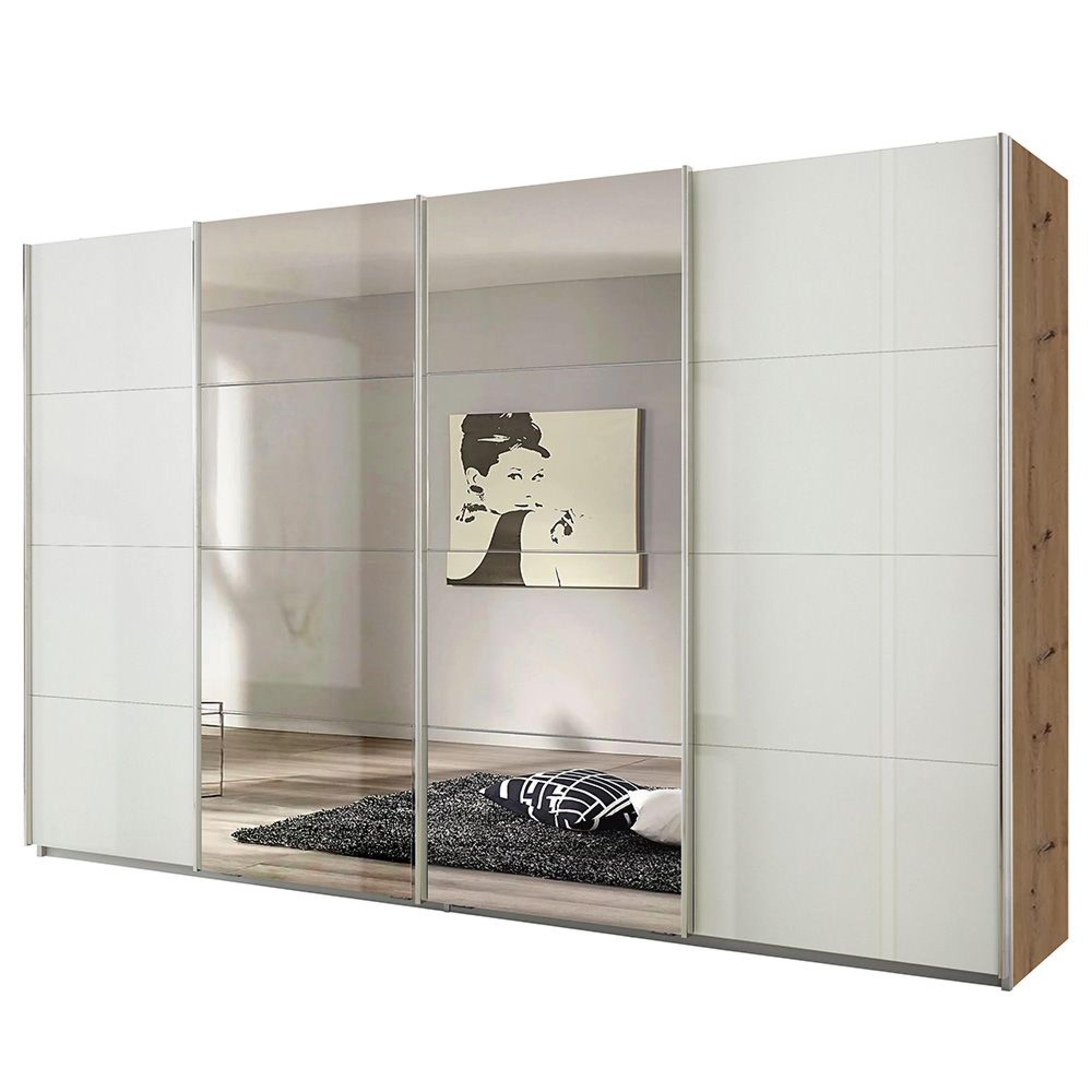 Rauch Syncrono 361cm 4 Door Sliding Wardrobe with Mirror - Artisan Oak and White High Gloss