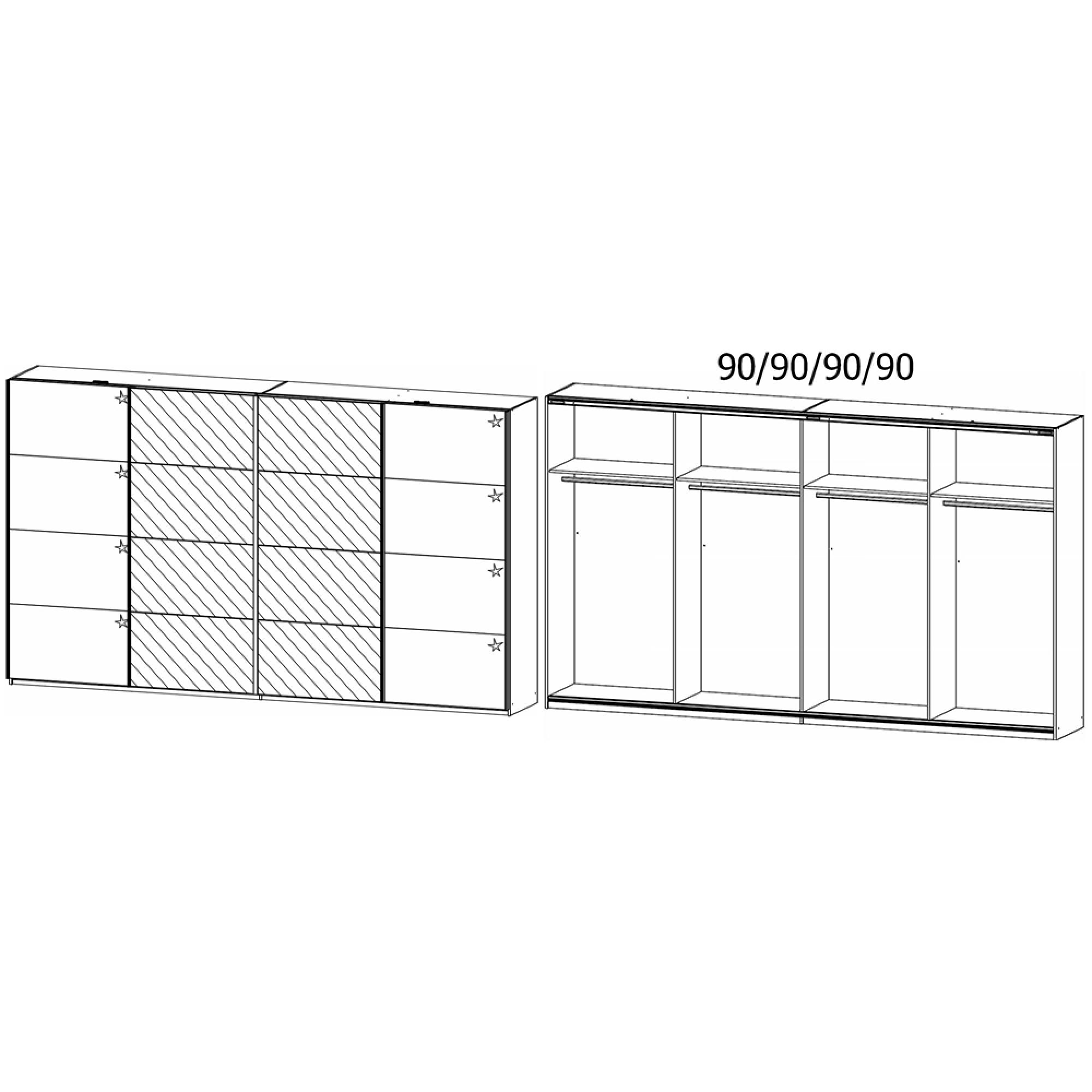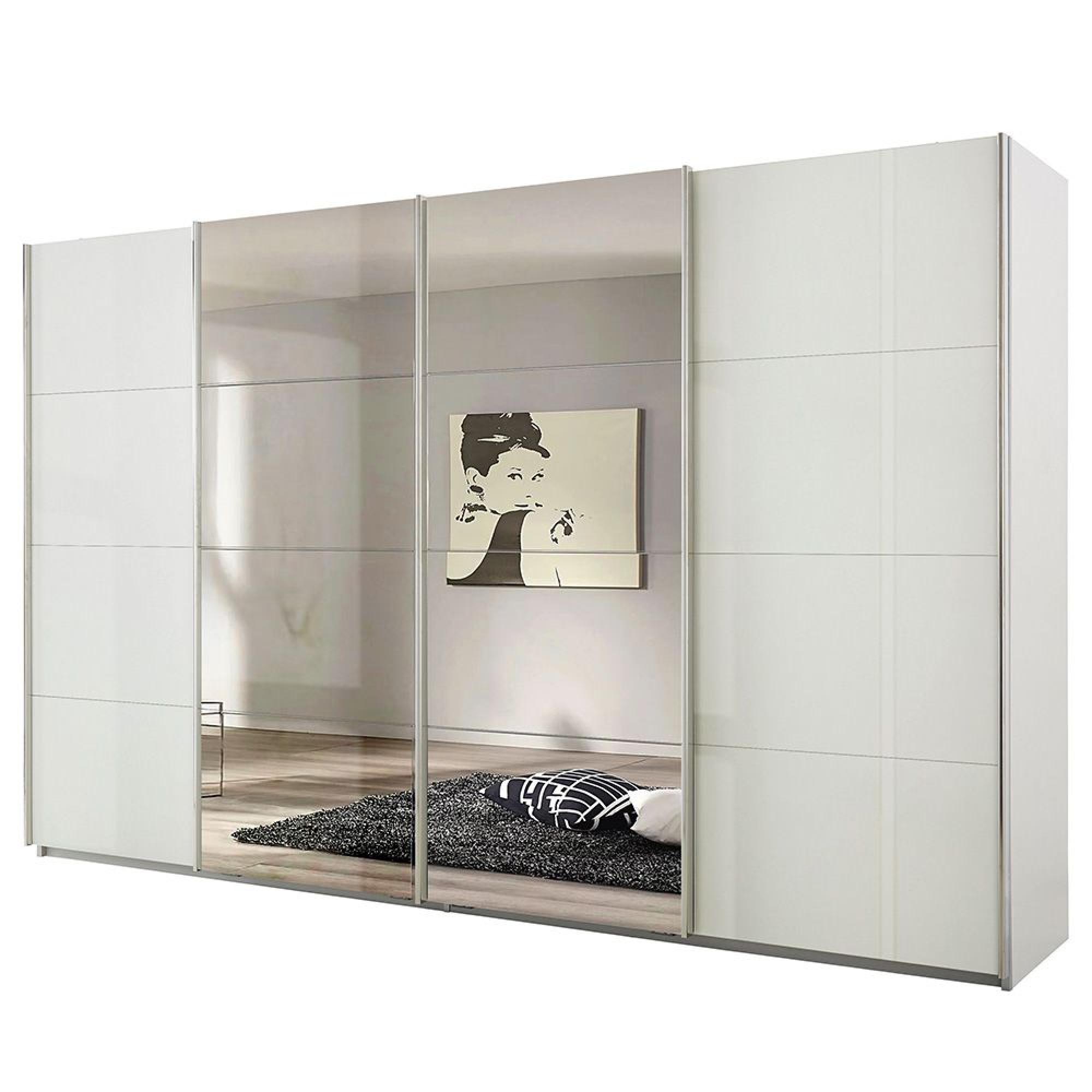 Rauch Syncrono 361cm 4 Door Sliding Wardrobe with Mirror - Alpine White and White High Gloss