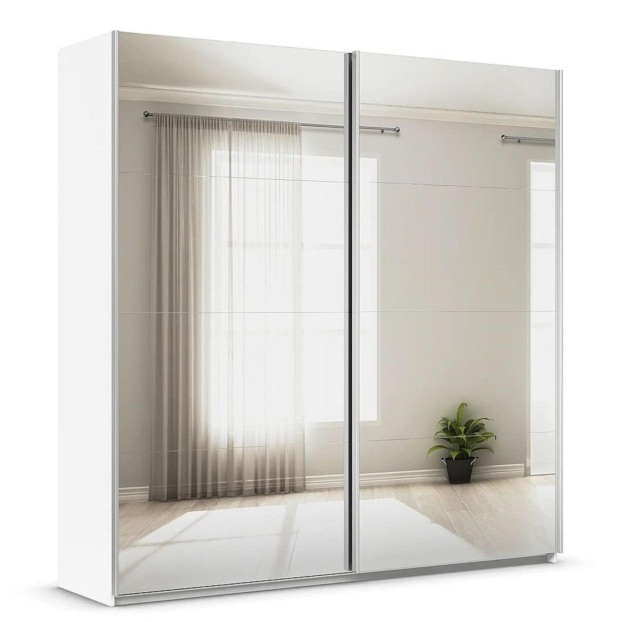 Quadra Sliding Wardrobe - 226cm - 2 Door - Mirrored - with Extras - Alpine White