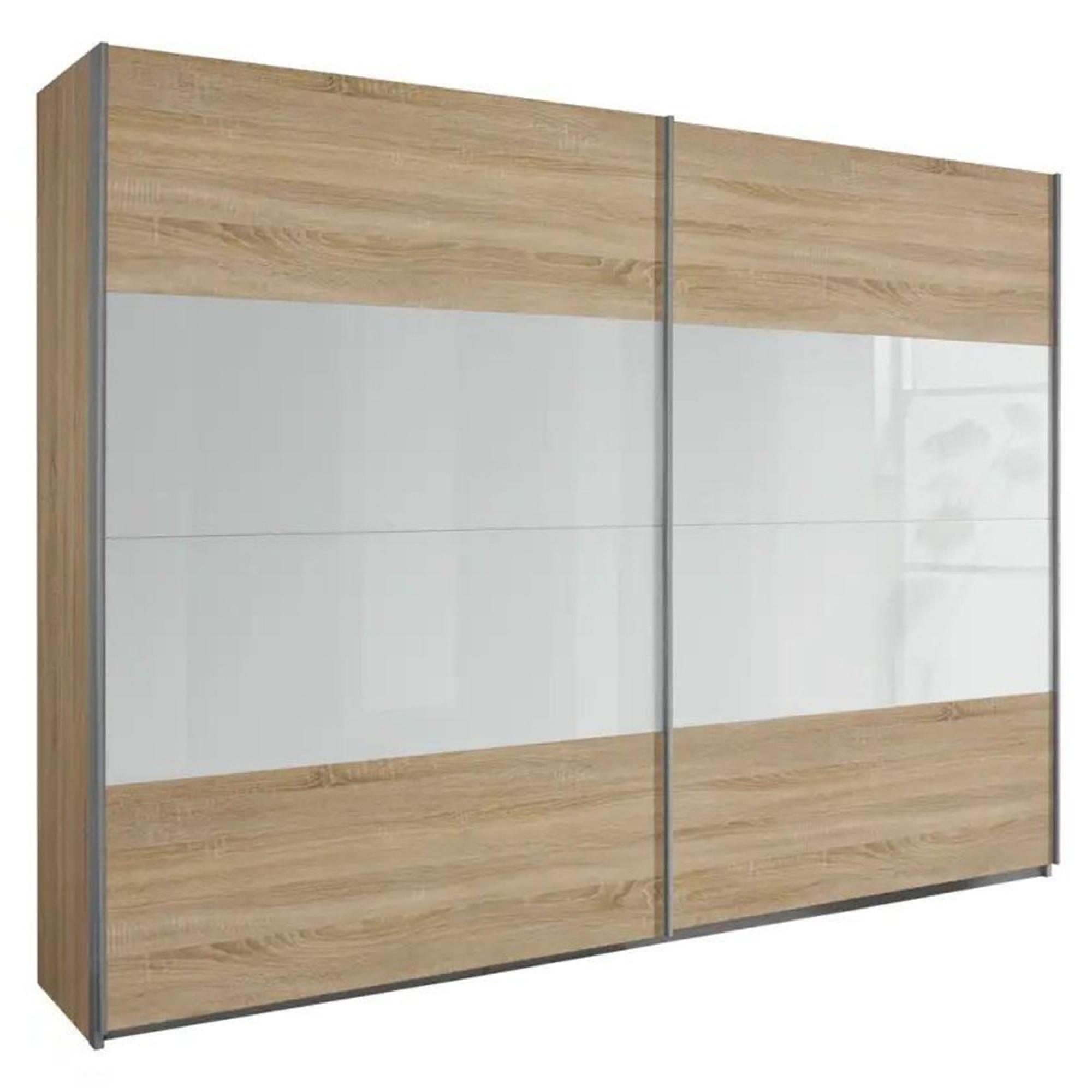 Rauch Quadra 271cm 2 Door Sliding Wardrobe - Sonoma Oak and White Glass