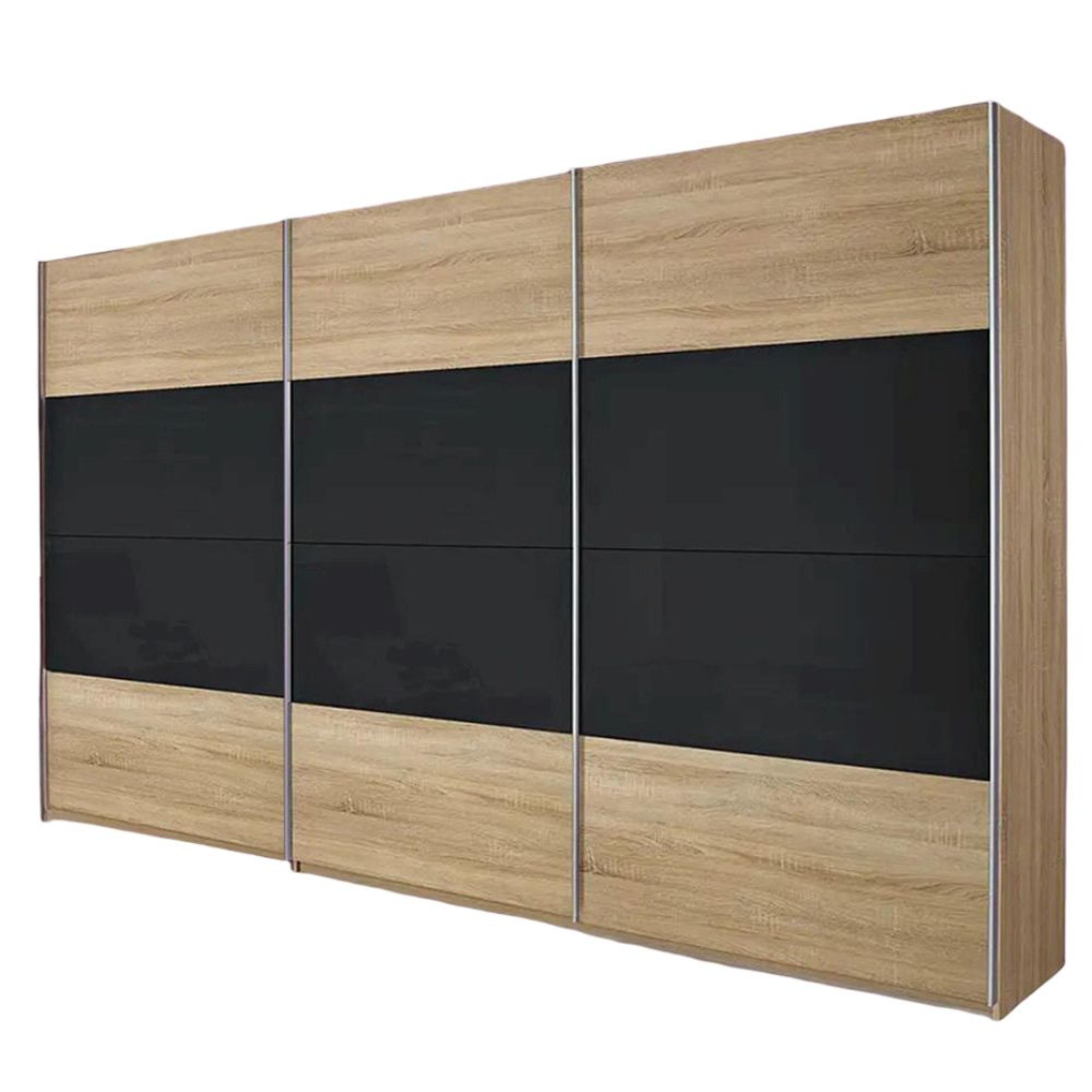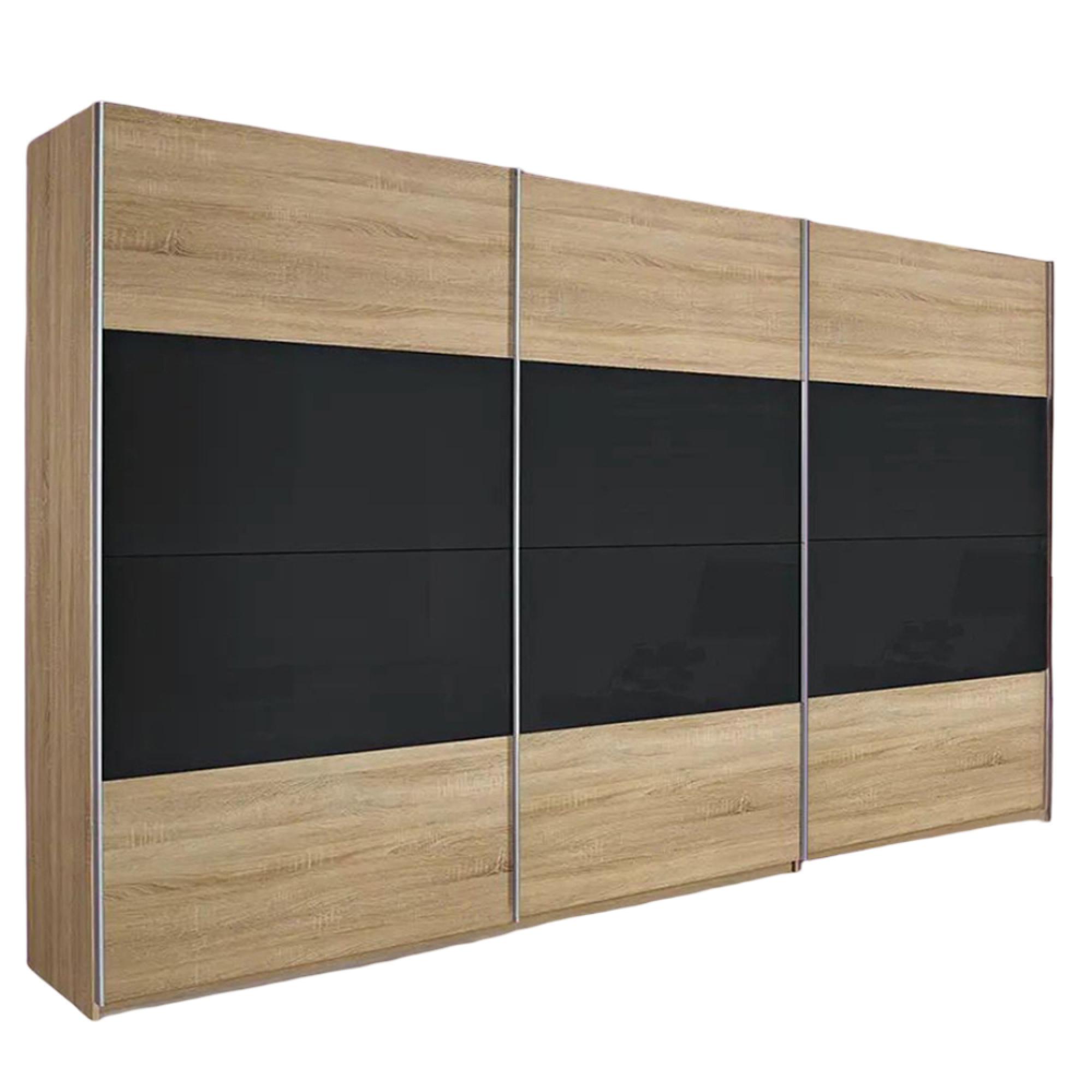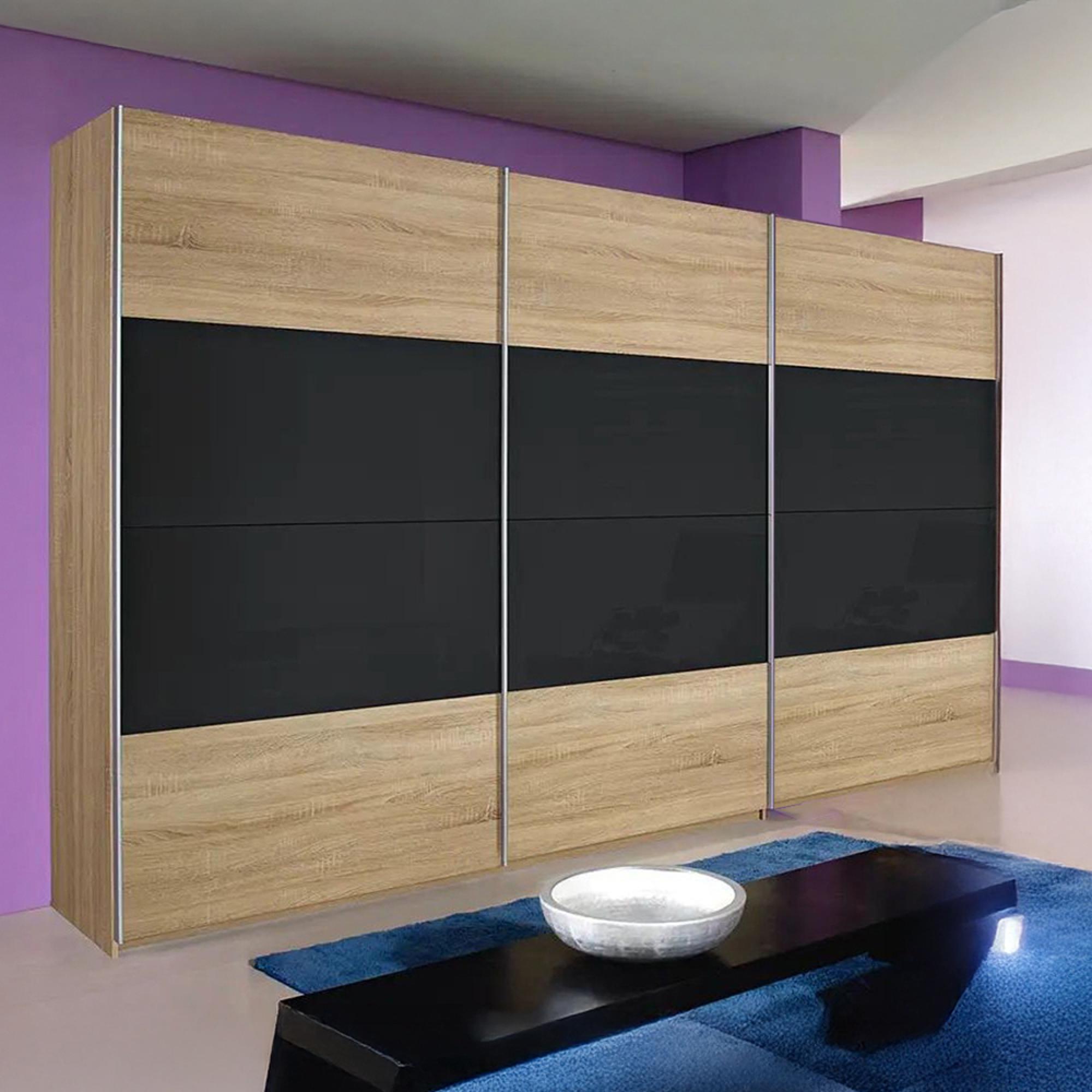 Rauch Quadra 315cm 3 Door Sliding Wardrobe - Sonoma Oak and Basalt Glass