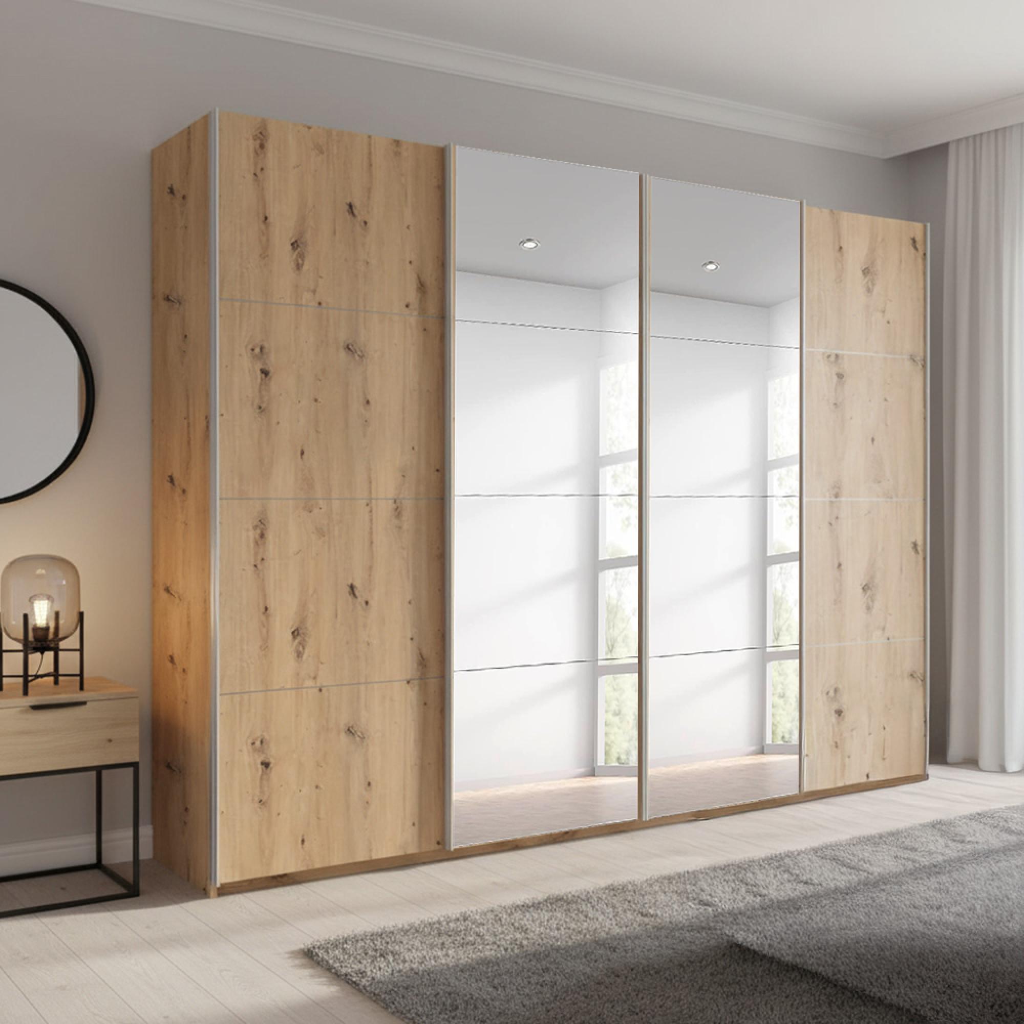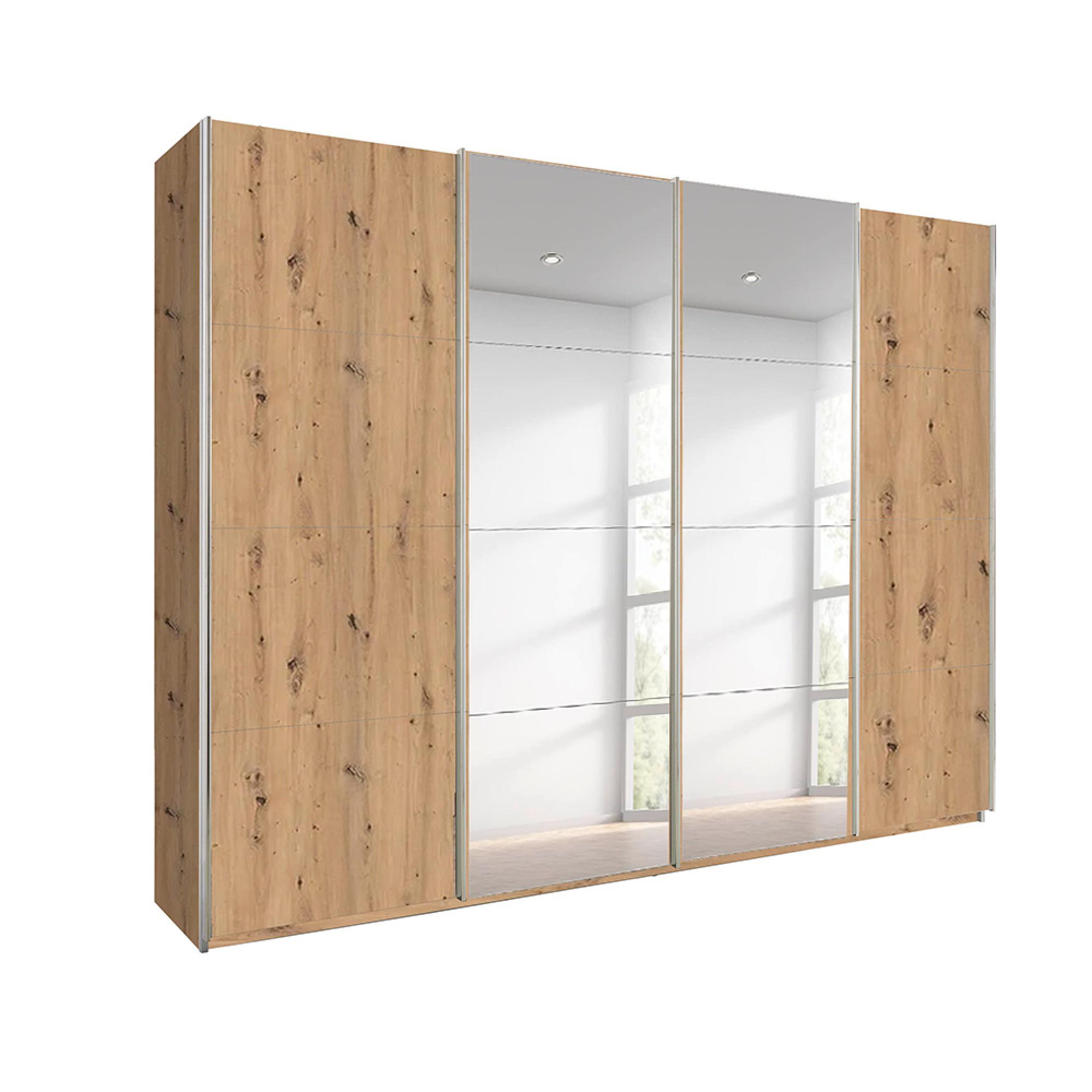 Beluga Extra Sliding Wardrobe - 271cm - 4 Door - Mirror - Artisan Oak