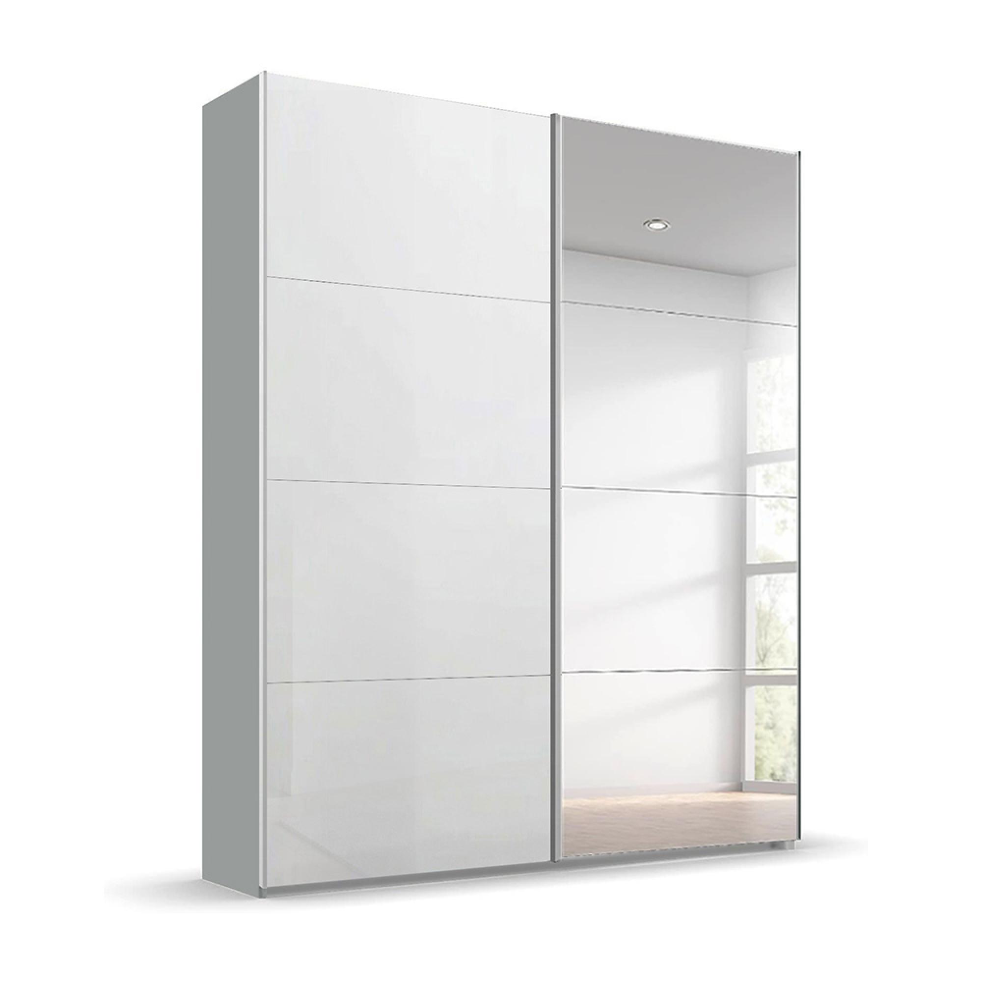 Rauch Beluga Extra 137cm 2 Door Sliding Wardrobe with Mirror - Silk Grey and White High Gloss