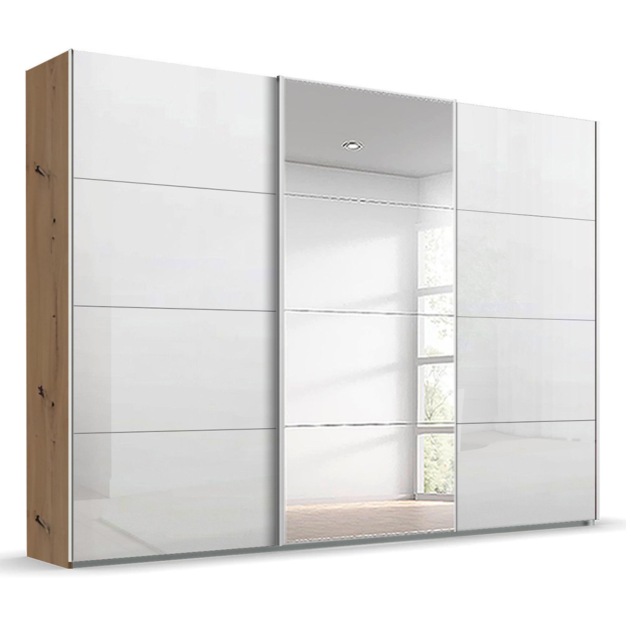 Rauch Beluga Extra 316cm 3 Door Sliding Wardrobe with Mirror - Artisan Oak and White High Gloss